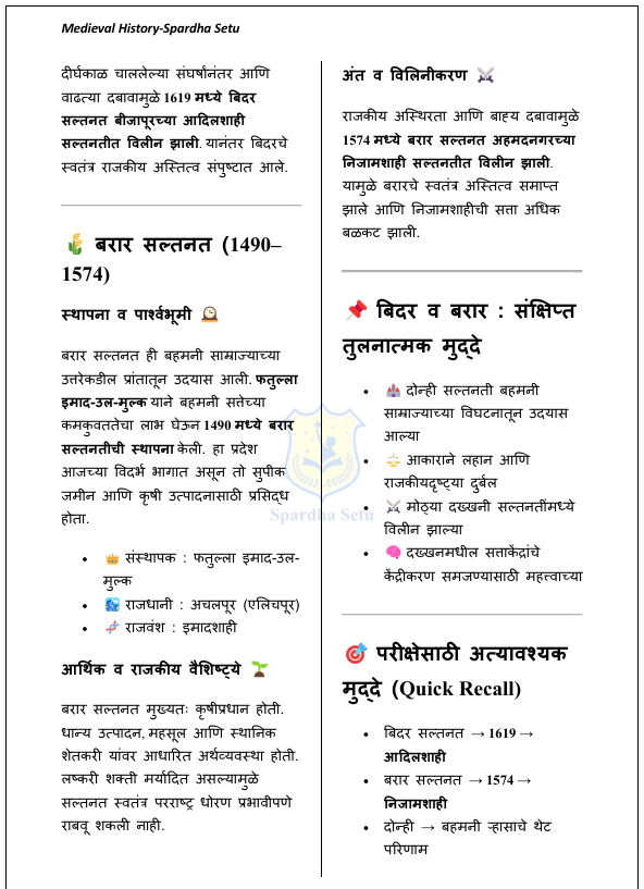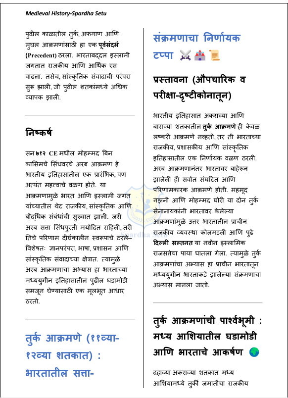 рд╣реЗ рдордзреНрдпрдпреБрдЧреАрди рднрд╛рд░рддреАрдп рдЗрддрд┐рд╣рд╛рд╕ рдИ-рдмреБрдХ рд╡рд┐рджреНрдпрд╛рд░реНрдереНрдпрд╛рдВрд╕рд╛рдареА foundation level рд╡рд░ рддрдпрд╛рд░ рдХрд░рдгреНрдпрд╛рдд рдЖрд▓реЗ рдЖрд╣реЗ. рджрд┐рд▓реНрд▓реА рд╕рд▓реНрддрдирдд, рдореБрдШрд▓ рд╕рд╛рдореНрд░рд╛рдЬреНрдп, рдкреНрд░рд╢рд╛рд╕рди, рд╕рдорд╛рдЬ, рдЕрд░реНрдерд╡реНрдпрд╡рд╕реНрдерд╛ рд╡ рд╕рдВрд╕реНрдХреГрддреА рдпрд╛рдВрдЪрд╛ рдЕрднреНрдпрд╛рд╕ рд╕реЛрдкреНрдпрд╛, рд╕реНрдкрд╖реНрдЯ рдЖрдгрд┐ рдХреНрд░рдордмрджреНрдз рднрд╛рд╖реЗрдд рдорд╛рдВрдбрдгреНрдпрд╛рдд рдЖрд▓рд╛ рдЖрд╣реЗ. рдЗрддрд┐рд╣рд╛рд╕рд╛рддреАрд▓ рдореВрд▓рднреВрдд рд╕рдВрдХрд▓реНрдкрдирд╛ рд╕рдордЬреВрди рдШреЗрдКрди рдкреБрдвреАрд▓ рдЕрднреНрдпрд╛рд╕рд╛рд╕рд╛рдареА рднрдХреНрдХрдо рдкрд╛рдпрд╛ рддрдпрд╛рд░ рд╡реНрд╣рд╛рд╡рд╛, рдпрд╛ рдЙрджреНрджреЗрд╢рд╛рдиреЗ рд╣реЗ рдкреБрд╕реНрддрдХ рддрдпрд╛рд░ рдХрд░рдгреНрдпрд╛рдд рдЖрд▓реЗ рдЖрд╣реЗ. MPSC, UPSC, рдкреЛрд▓реАрд╕ рднрд░рддреА рд╡ рдЗрддрд░ рд╕реНрдкрд░реНрдзрд╛ рдкрд░реАрдХреНрд╖рд╛рдВрд╕рд╛рдареА рдЙрдкрдпреБрдХреНрдд.