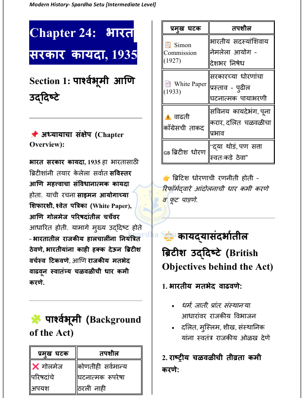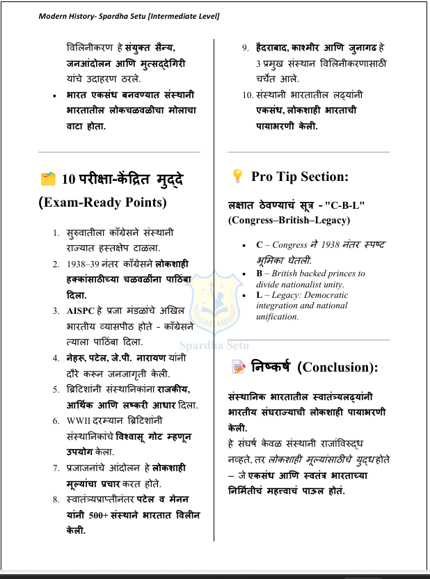 рд╣реЗ рдЖрдзреБрдирд┐рдХ рднрд╛рд░рддреАрдп рдЗрддрд┐рд╣рд╛рд╕ рдИ-рдмреБрдХ рд╡рд┐рджреНрдпрд╛рд░реНрдереНрдпрд╛рдВрд╕рд╛рдареА foundation level рд╡рд░ рдбрд┐рдЭрд╛рдЗрди рдХрд░рдгреНрдпрд╛рдд рдЖрд▓реЗ рдЖрд╣реЗ. рдмреНрд░рд┐рдЯрд┐рд╢ рд╕рддреНрддреЗрдЪреА рд╕реНрдерд╛рдкрдирд╛, рдкреНрд░рд╢рд╛рд╕рдХреАрдп рд╕реБрдзрд╛рд░рдгрд╛, рд╕рд╛рдорд╛рдЬрд┐рдХ-рдзрд╛рд░реНрдорд┐рдХ рдЪрд│рд╡рд│реА, рд╕реНрд╡рд╛рддрдВрддреНрд░реНрдп рдЪрд│рд╡рд│ рдЖрдгрд┐ рд░рд╛рд╖реНрдЯреНрд░рдирд┐рд░реНрдорд┐рддреАрдЪреА рдкреНрд░рдХреНрд░рд┐рдпрд╛ рдпрд╛рдВрдЪрд╛ рдЕрднреНрдпрд╛рд╕ рд╕реЛрдкреНрдпрд╛, рд╕реНрдкрд╖реНрдЯ рдЖрдгрд┐ рдХреНрд░рдордмрджреНрдз рднрд╛рд╖реЗрдд рдорд╛рдВрдбрдгреНрдпрд╛рдд рдЖрд▓рд╛ рдЖрд╣реЗ. MPSC, UPSC, рдорд╣рд╛рд░рд╛рд╖реНрдЯреНрд░ рдкреЛрд▓реАрд╕ рднрд░рддреА, рддрд▓рд╛рдареА рддрд╕реЗрдЪ рдЗрддрд░ рд╕рд░реНрд╡ рд╕реНрдкрд░реНрдзрд╛ рдкрд░реАрдХреНрд╖рд╛рдВрд╕рд╛рдареА рдЖрд╡рд╢реНрдпрдХ рдЕрд╕рд▓реЗрд▓реА рдореВрд▓рднреВрдд рд╕рдВрдХрд▓реНрдкрдирд╛рддреНрдордХ рд╕рдордЬ рд╡рд┐рдХрд╕рд┐рдд рдХрд░рдгреНрдпрд╛рд╕рд╛рдареА рд╣реЗ рдкреБрд╕реНрддрдХ рдЙрдкрдпреБрдХреНрдд рдЖрд╣реЗ.
