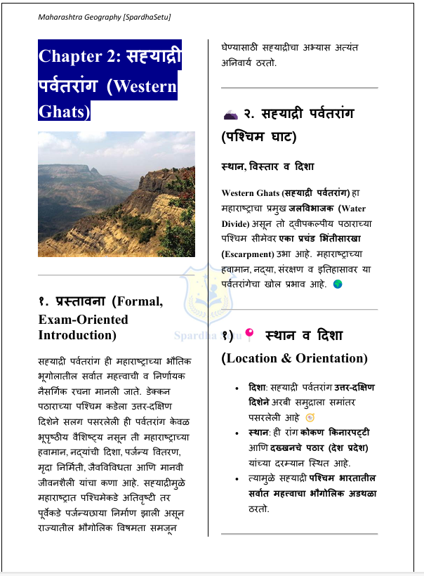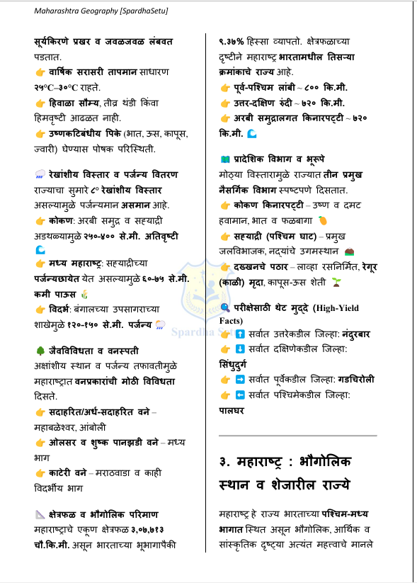 рд╣реЗ рдорд╣рд╛рд░рд╛рд╖реНрдЯреНрд░ рднреВрдЧреЛрд▓ рдИ-рдмреБрдХ рд╡рд┐рджреНрдпрд╛рд░реНрдереНрдпрд╛рдВрд╕рд╛рдареА foundation level рд╡рд░ рддрдпрд╛рд░ рдХрд░рдгреНрдпрд╛рдд рдЖрд▓реЗ рдЖрд╣реЗ. рдорд╣рд╛рд░рд╛рд╖реНрдЯреНрд░рд╛рдЪрд╛ рднреМрддрд┐рдХ рднреВрдЧреЛрд▓, рд╣рд╡рд╛рдорд╛рди, рдирджреНрдпрд╛, рдорд╛рддреА, рдиреИрд╕рд░реНрдЧрд┐рдХ рд╕рд╛рдзрдирд╕рдВрдкрддреНрддреА, рд╢реЗрддреА, рдЙрджреНрдпреЛрдЧ рд╡ рд▓реЛрдХрд╕рдВрдЦреНрдпрд╛ рдпрд╛рдВрдЪрд╛ рдЕрднреНрдпрд╛рд╕ рд╕реЛрдкреНрдпрд╛, рд╕реНрдкрд╖реНрдЯ рдЖрдгрд┐ рдкрд░реАрдХреНрд╖рд╛рднрд┐рдореБрдЦ рднрд╛рд╖реЗрдд рдорд╛рдВрдбрдгреНрдпрд╛рдд рдЖрд▓рд╛ рдЖрд╣реЗ. MPSC, UPSC, рдорд╣рд╛рд░рд╛рд╖реНрдЯреНрд░ рдкреЛрд▓реАрд╕ рднрд░рддреА, рддрд▓рд╛рдареА рддрд╕реЗрдЪ рдЗрддрд░ рд╕рд░реНрд╡ рд╕реНрдкрд░реНрдзрд╛ рдкрд░реАрдХреНрд╖рд╛рдВрд╕рд╛рдареА рдЖрд╡рд╢реНрдпрдХ рдЕрд╕рд▓реЗрд▓реА рдореВрд▓рднреВрдд рднреМрдЧреЛрд▓рд┐рдХ рд╕рдордЬ рд╡рд┐рдХрд╕рд┐рдд рдХрд░рдгреНрдпрд╛рд╕рд╛рдареА рд╣реЗ рдкреБрд╕реНрддрдХ рдЙрдкрдпреБрдХреНрдд рдЖрд╣реЗ.