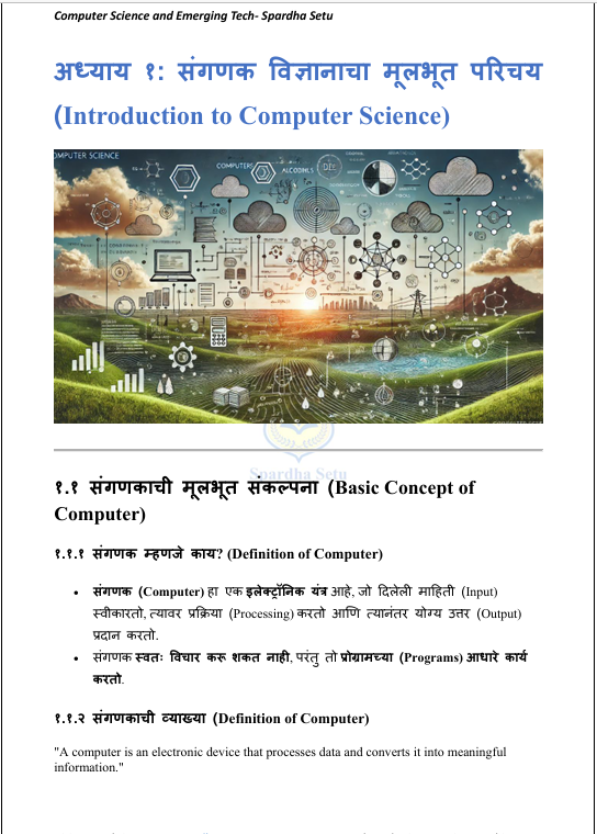 рд╣реЗ рд╕рдВрдЧрдгрдХ, рдорд╛рд╣рд┐рддреА рддрдВрддреНрд░рдЬреНрдЮрд╛рди рд╡ рдЙрджрдпреЛрдиреНрдореБрдЦ рддрдВрддреНрд░рдЬреНрдЮрд╛рди рдИ-рдмреБрдХ рд╡рд┐рджреНрдпрд╛рд░реНрдереНрдпрд╛рдВрд╕рд╛рдареА foundation level рд╡рд░ рддрдпрд╛рд░ рдХрд░рдгреНрдпрд╛рдд рдЖрд▓реЗ рдЖрд╣реЗ. рд╕рдВрдЧрдгрдХрд╛рдЪреА рдореВрд▓рднреВрдд рд░рдЪрдирд╛, рд╣рд╛рд░реНрдбрд╡реЗрдЕрд░ рд╡ рд╕реЙрдлреНрдЯрд╡реЗрдЕрд░, рдЗрдВрдЯрд░рдиреЗрдЯ рд╡ рдиреЗрдЯрд╡рд░реНрдХрд┐рдВрдЧ, рд╕рд╛рдпрдмрд░ рд╕реБрд░рдХреНрд╖рд╛ рддрд╕реЗрдЪ AI, рдорд╢реАрди рд▓рд░реНрдирд┐рдВрдЧ, рдмреНрд▓реЙрдХрдЪреЗрди, рдХреНрд▓рд╛рдЙрдб рдХрдореНрдкреНрдпреБрдЯрд┐рдВрдЧ рд╡ IoT рдпрд╛рдВрд╕рд╛рд░рдЦреНрдпрд╛ рдирд╡реНрдпрд╛ рддрдВрддреНрд░рдЬреНрдЮрд╛рдирд╛рдВрдЪреА рдУрд│рдЦ рд╕реЛрдкреНрдпрд╛, рд╕реНрдкрд╖реНрдЯ рдЖрдгрд┐ рдХреНрд░рдордмрджреНрдз рднрд╛рд╖реЗрдд рдХрд░реВрди рджреЗрдгреНрдпрд╛рдд рдЖрд▓реА рдЖрд╣реЗ. MPSC, UPSC, рдорд╣рд╛рд░рд╛рд╖реНрдЯреНрд░ рдкреЛрд▓реАрд╕ рднрд░рддреА, рддрд▓рд╛рдареА рддрд╕реЗрдЪ рдЗрддрд░ рд╕рд░реНрд╡ рд╕реНрдкрд░реНрдзрд╛ рдкрд░реАрдХреНрд╖рд╛рдВрд╕рд╛рдареА рдЖрд╡рд╢реНрдпрдХ рдЕрд╕рд▓реЗрд▓реА рд╕рдВрдЧрдгрдХ рд╡ IT рдЪреА рдореВрд▓рднреВрдд рд╕рдордЬ рд╡рд┐рдХрд╕рд┐рдд рдХрд░рдгреНрдпрд╛рд╕рд╛рдареА рд╣реЗ рдкреБрд╕реНрддрдХ рдЙрдкрдпреБрдХреНрдд рдЖрд╣реЗ.