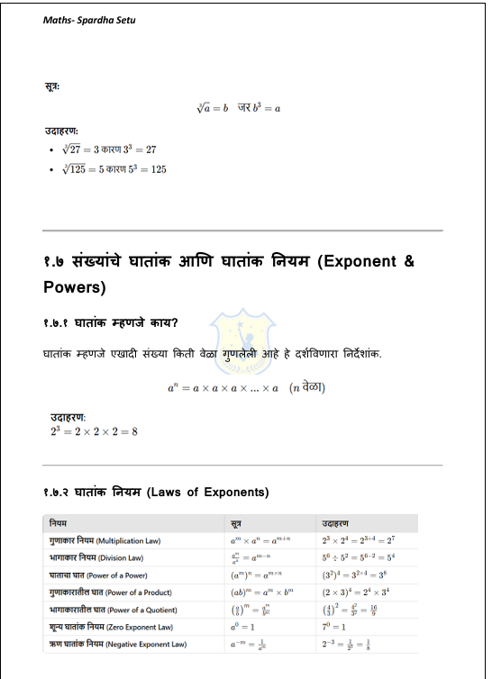 рд╣реЗ рдЧрдгрд┐рдд рдИ-рдмреБрдХ foundation level рд╡рд░ рддрдпрд╛рд░ рдХрд░рдгреНрдпрд╛рдд рдЖрд▓реЗ рдЖрд╣реЗ. рд╕рдВрдЦреНрдпрд╛ рдкреНрд░рдгрд╛рд▓реА, рдЯрдХреНрдХреЗрд╡рд╛рд░реА, рдЕрдиреБрдкрд╛рдд-рдкреНрд░рдорд╛рдг, рд╕рд░рд╛рд╕рд░реА, рдирдлрд╛-рддреЛрдЯрд╛, рд╡реНрдпрд╛рдЬ, рд╡реЗрдЧ-рд╡реЗрд│-рдЕрдВрддрд░, рдХрд╛рдо-рд╡реЗрд│ рд╡ рд╕рдВрдЦреНрдпрд╛рддреНрдордХ рдХреНрд╖рдорддрд╛ рдпрд╛рдВрд╕рд╛рд░рдЦреНрдпрд╛ рдореВрд▓рднреВрдд рдЧрдгрд┐рддреА рдШрдЯрдХрд╛рдВрдЪрд╛ рдЕрднреНрдпрд╛рд╕ рд╕реЛрдкреНрдпрд╛, рд╕реНрдкрд╖реНрдЯ рдЖрдгрд┐ рдЙрджрд╛рд╣рд░рдгрд╛рдзрд╛рд░рд┐рдд рднрд╛рд╖реЗрдд рдорд╛рдВрдбрдгреНрдпрд╛рдд рдЖрд▓рд╛ рдЖрд╣реЗ. MPSC, UPSC, рдорд╣рд╛рд░рд╛рд╖реНрдЯреНрд░ рдкреЛрд▓реАрд╕ рднрд░рддреА, рддрд▓рд╛рдареА рддрд╕реЗрдЪ рдЗрддрд░ рд╕рд░реНрд╡ рд╕реНрдкрд░реНрдзрд╛ рдкрд░реАрдХреНрд╖рд╛рдВрд╕рд╛рдареА рдЖрд╡рд╢реНрдпрдХ рдЕрд╕рд▓реЗрд▓реА рдЧрдгрд┐рддрд╛рдЪреА рдореВрд▓рднреВрдд рд╕рдордЬ рд╡рд┐рдХрд╕рд┐рдд рдХрд░рдгреНрдпрд╛рд╕рд╛рдареА рд╣реЗ рдкреБрд╕реНрддрдХ рдЙрдкрдпреБрдХреНрдд рдЖрд╣реЗ.