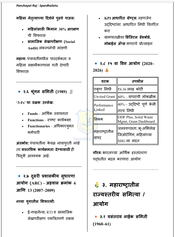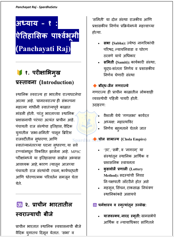 рд╣реЗ рдкрдВрдЪрд╛рдпрддрд░рд╛рдЬ рд╡реНрдпрд╡рд╕реНрдерд╛ рдИ-рдмреБрдХ рд╡рд┐рджреНрдпрд╛рд░реНрдереНрдпрд╛рдВрд╕рд╛рдареА foundation level рд╡рд░ рддрдпрд╛рд░ рдХрд░рдгреНрдпрд╛рдд рдЖрд▓реЗ рдЖрд╣реЗ. рдЧреНрд░рд╛рдорд╕рднрд╛, рдЧреНрд░рд╛рдордкрдВрдЪрд╛рдпрдд, рдкрдВрдЪрд╛рдпрдд рд╕рдорд┐рддреА рд╡ рдЬрд┐рд▓реНрд╣рд╛ рдкрд░рд┐рд╖рдж рдпрд╛рдВрдЪреА рд░рдЪрдирд╛, рдХрд╛рд░реНрдпреЗ рд╡ рдЕрдзрд┐рдХрд╛рд░, рд╕реНрдерд╛рдирд┐рдХ рд╕реНрд╡рд░рд╛рдЬреНрдп рд╕рдВрд╕реНрдерд╛рдВрдЪреА рднреВрдорд┐рдХрд╛, ренрей рд╡реА рдШрдЯрдирд╛рджреБрд░реБрд╕реНрддреА, рдЖрд░рдХреНрд╖рдг рд╡реНрдпрд╡рд╕реНрдерд╛ рддрд╕реЗрдЪ рдЧреНрд░рд╛рдореАрдг рд╡рд┐рдХрд╛рд╕рд╛рддреАрд▓ рдкрдВрдЪрд╛рдпрддрд░рд╛рдЬрдЪреЗ рдорд╣рддреНрддреНрд╡ рд╕реЛрдкреНрдпрд╛, рд╕реНрдкрд╖реНрдЯ рдЖрдгрд┐ рдЙрджрд╛рд╣рд░рдгрд╛рдзрд╛рд░рд┐рдд рднрд╛рд╖реЗрдд рдорд╛рдВрдбрдгреНрдпрд╛рдд рдЖрд▓реЗ рдЖрд╣реЗ. MPSC, UPSC, рдорд╣рд╛рд░рд╛рд╖реНрдЯреНрд░ рдкреЛрд▓реАрд╕ рднрд░рддреА, рддрд▓рд╛рдареА рддрд╕реЗрдЪ рдЗрддрд░ рд╕рд░реНрд╡ рд╕реНрдкрд░реНрдзрд╛ рдкрд░реАрдХреНрд╖рд╛рдВрд╕рд╛рдареА рдЖрд╡рд╢реНрдпрдХ рдЕрд╕рд▓реЗрд▓реА рдкрдВрдЪрд╛рдпрддрд░рд╛рдЬ рд╡реНрдпрд╡рд╕реНрдереЗрдЪреА рдореВрд▓рднреВрдд рд╕рдордЬ рд╡рд┐рдХрд╕рд┐рдд рдХрд░рдгреНрдпрд╛рд╕рд╛рдареА рд╣реЗ рдкреБрд╕реНрддрдХ рдЙрдкрдпреБрдХреНрдд рдЖрд╣реЗ.
