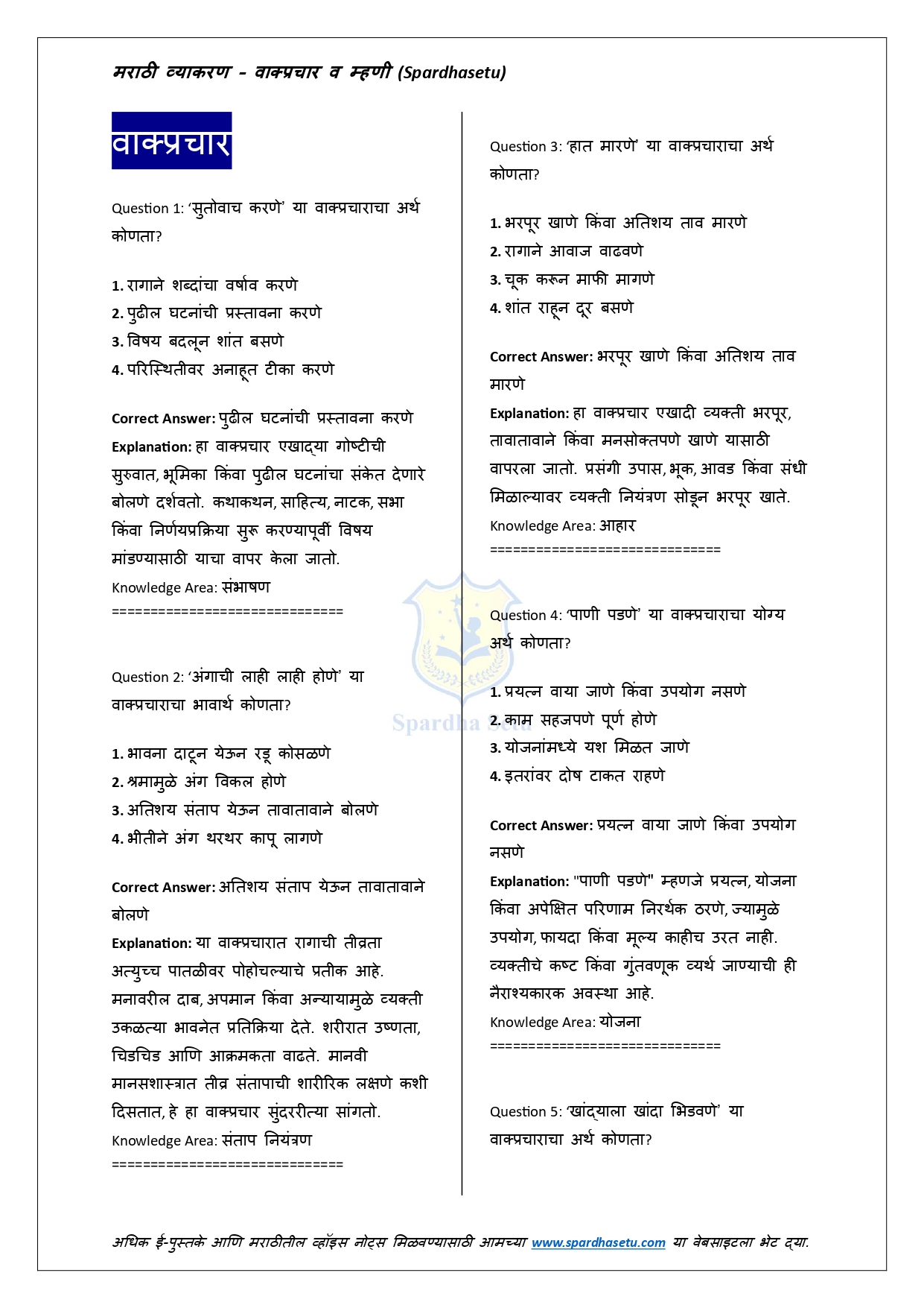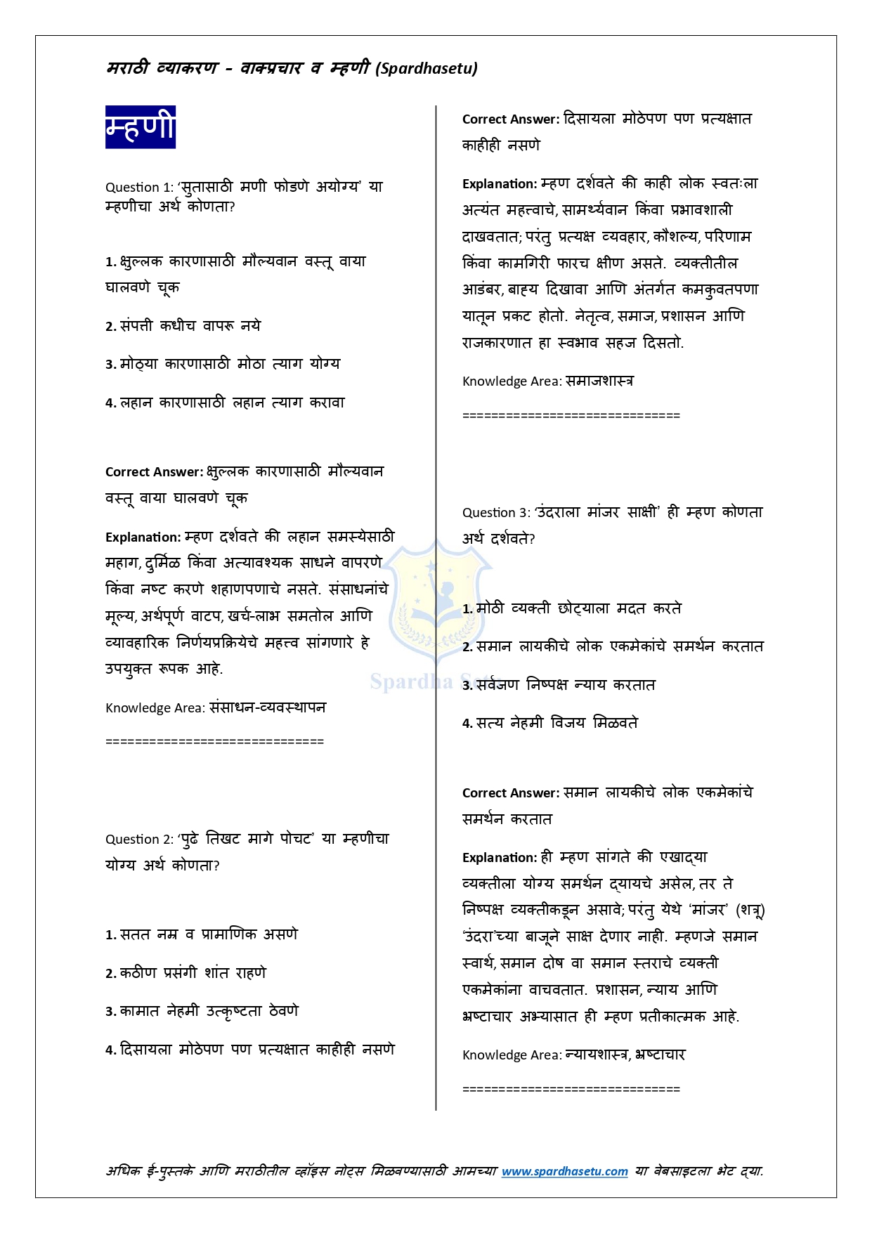 рд╣реЗ рдИ-рдмреБрдХ рдорд░рд╛рдареАрддреАрд▓ рдорд╣рддреНрддреНрд╡рд╛рдЪреНрдпрд╛ рдореНрд╣рдгреА рдЖрдгрд┐ рд╡рд╛рдХреНрдкреНрд░рдЪрд╛рд░рд╛рдВрдЪрд╛ рд╕рдЦреЛрд▓, рд╕реЛрдкрд╛ рдЖрдгрд┐ рдЕрд░реНрдердкреВрд░реНрдг рд╕рдВрдЧреНрд░рд╣ рд╕рд╛рджрд░ рдХрд░рддреЗ. рдкреНрд░рддреНрдпреЗрдХ рдореНрд╣рдг рд╡ рд╡рд╛рдХреНрдкреНрд░рдЪрд╛рд░рд╛рдЪрд╛ рдЕрд░реНрде, рд╕рдВрджрд░реНрдн рдЖрдгрд┐ рдпреЛрдЧреНрдп рд╡рд╛рдкрд░ рд╕реНрдкрд╖реНрдЯ рдкрджреНрдзрддреАрдиреЗ рджрд┐рд▓рд╛ рдЕрд╕рд▓реНрдпрд╛рдиреЗ рд╕реНрдкрд░реНрдзрд╛ рдкрд░реАрдХреНрд╖рд╛рдВрдордзреНрдпреЗ рдпреЗрдгрд╛рд░реЗ рдкреНрд░рд╢реНрди рд╕рд╣рдЬ рд╕реЛрдбрд╡рддрд╛ рдпреЗрддрд╛рдд. рд▓реЗрдЦрди, рднрд╛рд╖рд╛рдВрддрд░, рдирд┐рдмрдВрдз рдЖрдгрд┐ рднрд╛рд╖рд┐рдХ рдЕрднрд┐рд╡реНрдпрдХреНрддреА рд╕реБрдзрд╛рд░рдгреНрдпрд╛рд╕рд╛рдареА рд╣реЗ рдкреБрд╕реНрддрдХ рдЕрддреНрдпрдВрдд рдЙрдкрдпреБрдХреНрдд рдард░рддреЗ. MPSC, рд╕рд░рд│рд╕реЗрд╡рд╛, рдкреЛрд▓реАрд╕ рднрд░рддреА рдЖрдгрд┐ рд╕рд░реНрд╡ рдкреНрд░рдХрд╛рд░рдЪреНрдпрд╛ рд╕рд░рдХрд╛рд░реА рдкрд░реАрдХреНрд╖рд╛рдВрд╕рд╛рдареА рд╣реЗ рд╕рдВрдкреВрд░реНрдг рдорд╛рд░реНрдЧрджрд░реНрд╢рдХ рдЖрд╣реЗ.