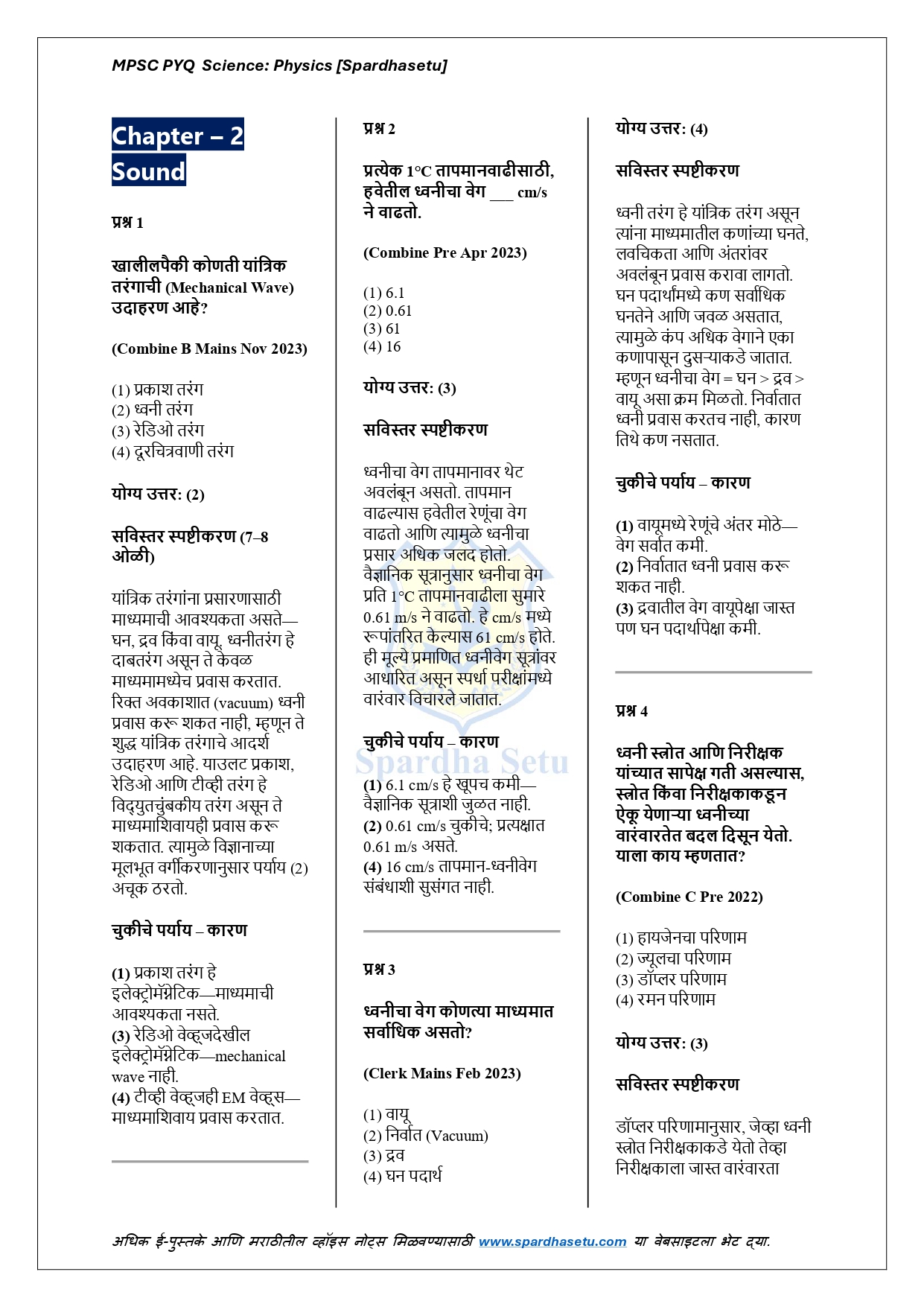 рд╣реЗ рдИ-рдмреБрдХ MPSC рдкрд░реАрдХреНрд╖реЗрдд рд╡рд┐рдЪрд╛рд░рд▓реЗрд▓реНрдпрд╛ рднреМрддрд┐рдХрд╢рд╛рд╕реНрддреНрд░ рд╡рд┐рд╖рдпрд╛рдЪреНрдпрд╛ рд╕рд░реНрд╡ рдорд╣рддреНрддреНрд╡рдкреВрд░реНрдг PYQs рдЪреЗ рдЕрдЪреВрдХ, рдЕрджреНрдпрдпрд╛рд╡рдд рдЖрдгрд┐ рд╡рд┐рд╢реНрд▓реЗрд╖рдгрд╛рддреНрдордХ рд╕рдВрдХрд▓рди рдЖрд╣реЗ. рдЧрддреА, рдмрд▓, рдКрд░реНрдЬрд╛, рдЙрд╖реНрдгрддрд╛, рдкреНрд░рдХрд╛рд╢, рдзреНрд╡рдиреА, рд╡рд┐рджреНрдпреБрдд рд╡ рдЪреБрдВрдмрдХрддреНрд╡ рдпрд╛рдВрд╕рд╛рд░рдЦреНрдпрд╛ рдЕрдзреНрдпрд╛рдпрд╛рдВрд╡рд░реАрд▓ рдкреНрд░рд╢реНрдирд╛рдВрдирд╛ рд╕рд╡рд┐рд╕реНрддрд░ рд╕реНрдкрд╖реНрдЯреАрдХрд░рдгреЗ рджреЗрдКрди рдореВрд▓рднреВрдд рд╕рдВрдХрд▓реНрдкрдирд╛ рджреГрдв рдХрд░рдгреНрдпрд╛рд╡рд░ рдкреБрд╕реНрддрдХрд╛рдЪрд╛ рд╡рд┐рд╢реЗрд╖ рднрд░ рдЖрд╣реЗ. рдкреНрд░рддреНрдпреЗрдХ рдкреНрд░рд╢реНрдирд╛рдЪреЗ рдХрд╛рд░рдгрдореАрдорд╛рдВрд╕рд╛тАУрдЖрдзрд╛рд░рд┐рдд рд╡рд┐рд╢реНрд▓реЗрд╖рдг рд╡рд┐рджреНрдпрд╛рд░реНрдереНрдпрд╛рдВрдирд╛ рдирд╡реАрди рд╡ рдмрджрд▓рд▓реЗрд▓реНрдпрд╛ рдкреЕрдЯрд░реНрдирд╡рд░реАрд▓ рдкреНрд░рд╢реНрдирд╣реА рдЖрддреНрдорд╡рд┐рд╢реНрд╡рд╛рд╕рд╛рдиреЗ рд╕реЛрдбрд╡рддрд╛ рдпреЗрдИрд▓ рдЕрд╢реА рдХреНрд╖рдорддрд╛ рд╡рд┐рдХрд╕рд┐рдд рдХрд░рддреЗ. MPSC Prelims, рд╕рд░рд│рд╕реЗрд╡рд╛ рдЖрдгрд┐ рдЗрддрд░ рд╕рд░реНрд╡ рд╡рд┐рдЬреНрдЮрд╛рдирд╛рдзрд╛рд░рд┐рдд рд╕реНрдкрд░реНрдзрд╛ рдкрд░реАрдХреНрд╖рд╛рдВрд╕рд╛рдареА рд╣реЗ рдИ-рдмреБрдХ рдЕрддреНрдпрдВрдд рдЙрдкрдпреБрдХреНрдд рдард░рддреЗ.