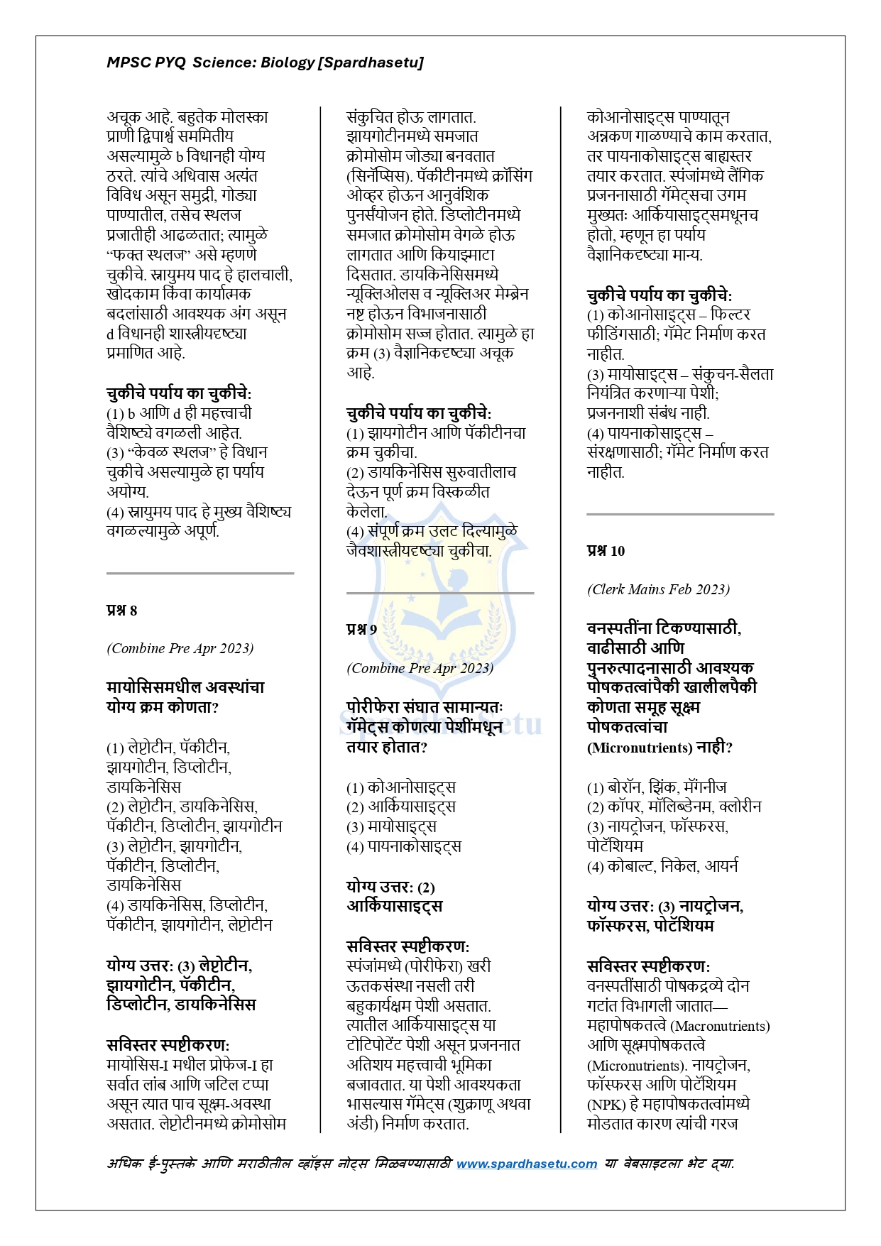 рд╣реЗ рдИ-рдмреБрдХ MPSC рдкрд░реАрдХреНрд╖реЗрдд рд╡рд┐рдЪрд╛рд░рд▓реЗрд▓реНрдпрд╛ рдЬреАрд╡рд╢рд╛рд╕реНрддреНрд░ рд╡рд┐рд╖рдпрд╛рдЪреНрдпрд╛ рд╕рд░реНрд╡ рдорд╣рддреНрддреНрд╡рдкреВрд░реНрдг PYQs рдЪреЗ рдЕрдЪреВрдХ, рд╡реНрдпрд╡рд╕реНрдерд┐рдд рдЖрдгрд┐ рд╡рд┐рд╢реНрд▓реЗрд╖рдгрд╛рддреНрдордХ рд╕рдВрдХрд▓рди рдЖрд╣реЗ. рдкреЗрд╢реА, рдКрддрдХ, рд╡рдирд╕реНрдкрддреА-рдЬреАрд╡рд╡рд┐рдЬреНрдЮрд╛рди, рдкреНрд░рд╛рдгреАрд╢рд╛рд╕реНрддреНрд░, рдорд╛рдирд╡реА рд╢рд░реАрд░рд░рдЪрдирд╛, рдкреЛрд╖рдг, рд╢реНрд╡рд╕рди, рдкреНрд░рдЬрдирди рдЖрдгрд┐ рдкрд░реНрдпрд╛рд╡рд░рдгрд╢рд╛рд╕реНрддреНрд░ рдпрд╛рдВрд╕рд╛рд░рдЦреНрдпрд╛ рдЕрдзреНрдпрд╛рдпрд╛рдВрд╡рд░реАрд▓ рдкреНрд░рд╢реНрдирд╛рдВрдирд╛ рд╕рд╡рд┐рд╕реНрддрд░ рдЖрдгрд┐ рддрд░реНрдХрд╢реБрджреНрдз рд╕реНрдкрд╖реНрдЯреАрдХрд░рдг рджреЗрдКрди рд╕рдВрдХрд▓реНрдкрдирд╛рддреНрдордХ рд╕рдордЬ рдЕрдзрд┐рдХ рдордЬрдмреВрдд рдХреЗрд▓реА рдЖрд╣реЗ. рдкреНрд░рддреНрдпреЗрдХ рдкреНрд░рд╢реНрдирд╛рдорд╛рдЧреАрд▓ рдХрд╛рд░рдгрдореАрдорд╛рдВрд╕рд╛ рд╕реНрдкрд╖реНрдЯ рдЕрд╕рд▓реНрдпрд╛рдореБрд│реЗ рд╡рд┐рджреНрдпрд╛рд░реНрдереА рдирд╡реАрди рдЖрдгрд┐ рдмрджрд▓рддреНрдпрд╛ рдкреЕрдЯрд░реНрдирд╡рд░реАрд▓ рдкреНрд░рд╢реНрдирд╣реА рдЖрддреНрдорд╡рд┐рд╢реНрд╡рд╛рд╕рд╛рдиреЗ рд╕реЛрдбрд╡реВ рд╢рдХрддрд╛рдд. MPSC Prelims, рд╕рд░рд│рд╕реЗрд╡рд╛, рдкреЛрд▓реАрд╕ рднрд░рддреА рдЖрдгрд┐ рдЗрддрд░ рд╕рд░реНрд╡ рд╡рд┐рдЬреНрдЮрд╛рдирд╛рдзрд╛рд░рд┐рдд рд╕реНрдкрд░реНрдзрд╛ рдкрд░реАрдХреНрд╖рд╛рдВрд╕рд╛рдареА рд╣реЗ рдИ-рдмреБрдХ рдЕрддреНрдпрдВрдд рдЙрдкрдпреБрдХреНрдд рдард░рддреЗ.