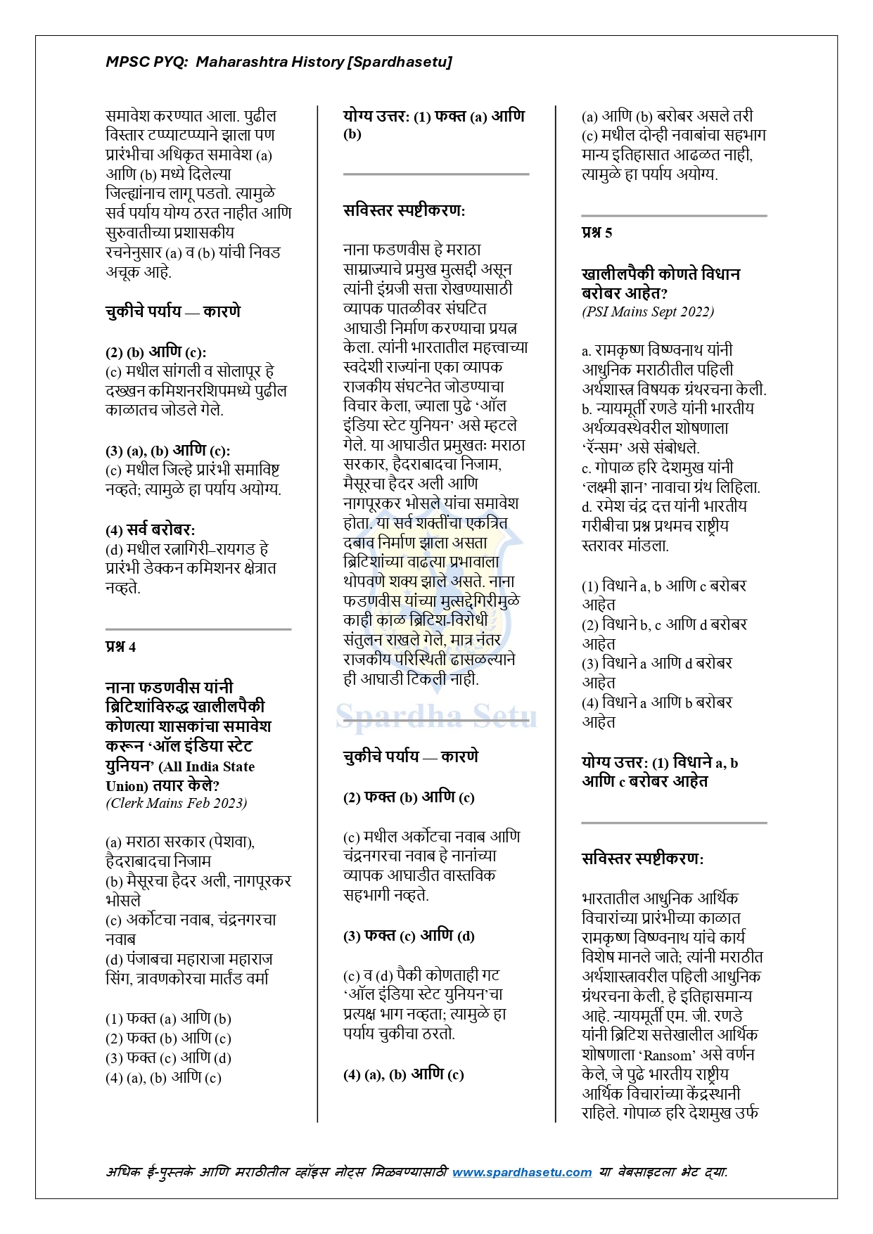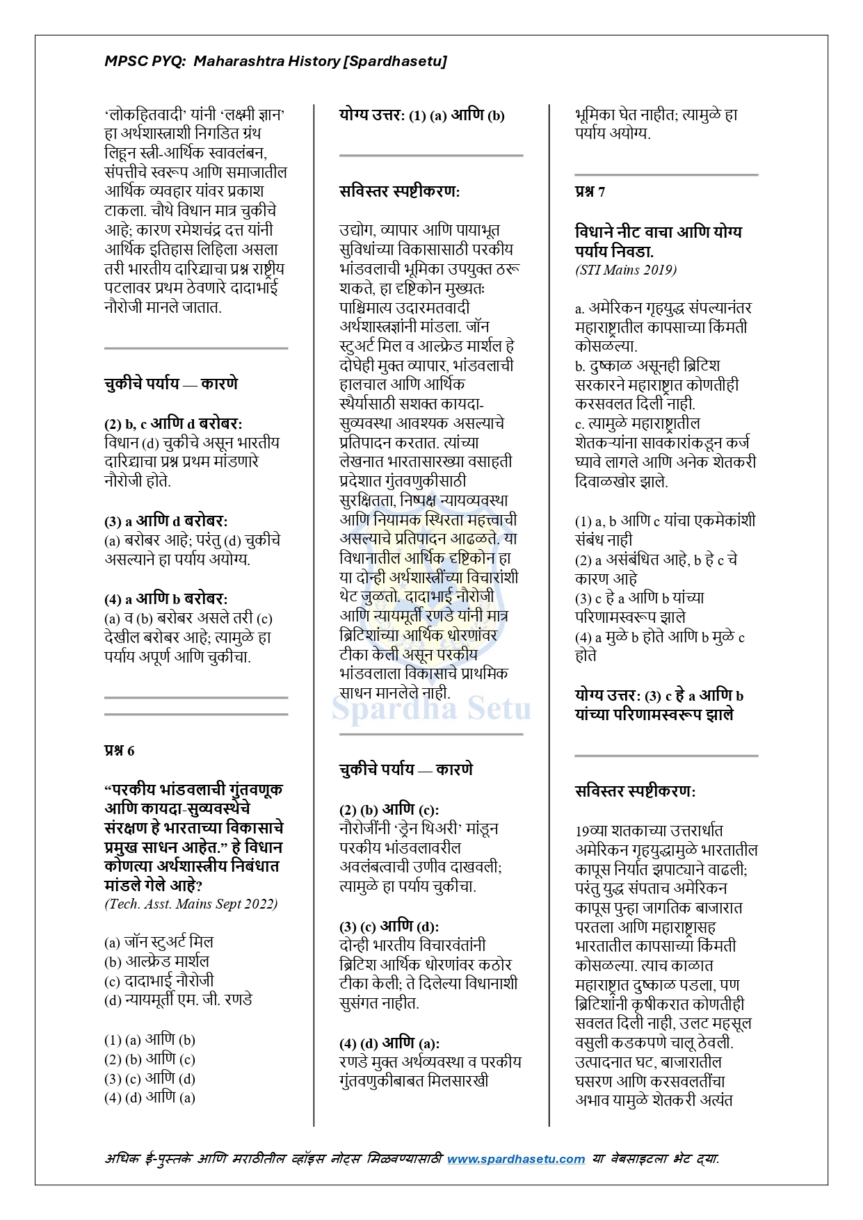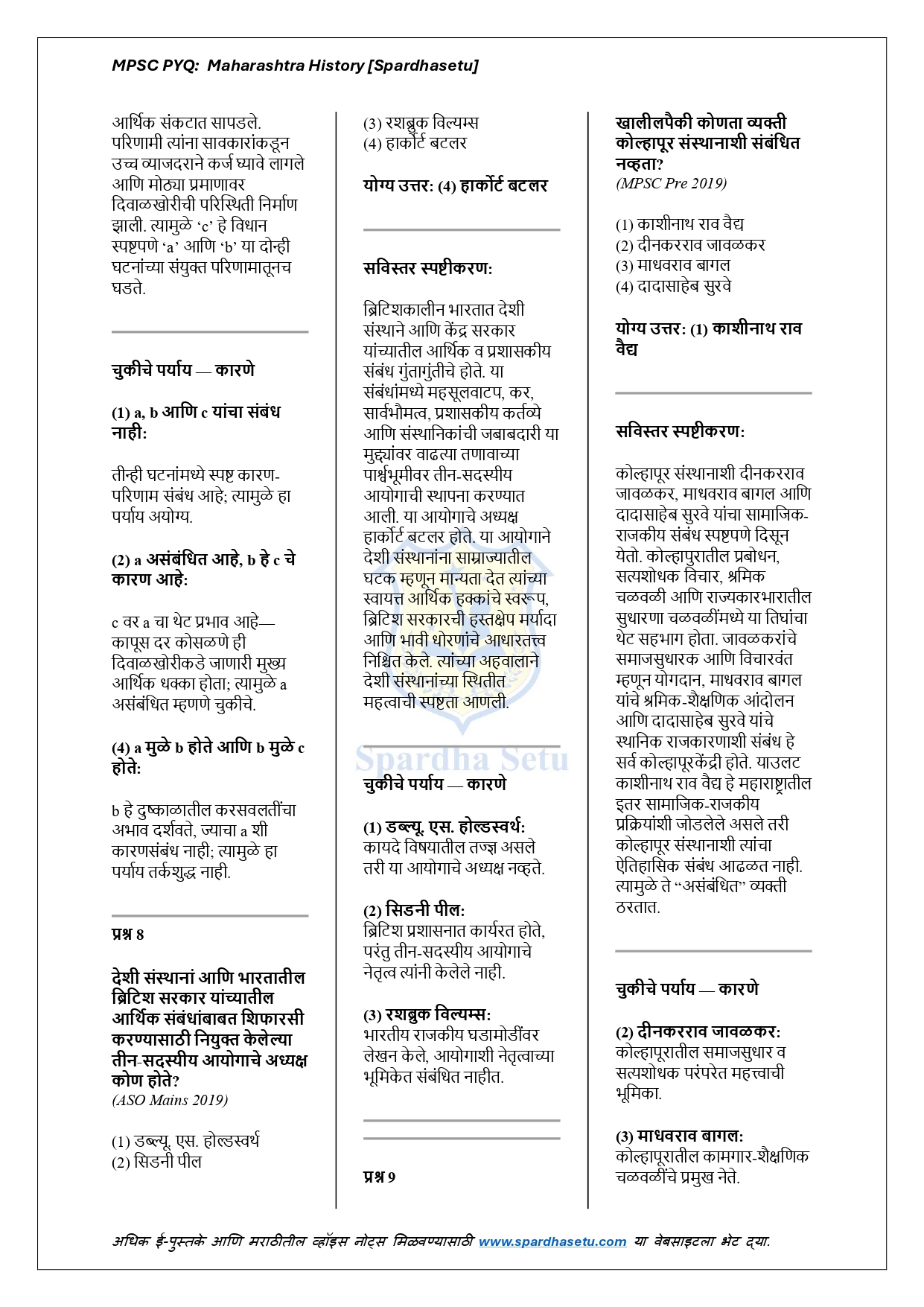 рд╣реЗ рдИ-рдмреБрдХ MPSC рдкрд░реАрдХреНрд╖реЗрдд рд╡рд┐рдЪрд╛рд░рд▓реЗрд▓реНрдпрд╛ рдорд╣рд╛рд░рд╛рд╖реНрдЯреНрд░рд╛рдЪреНрдпрд╛ рдЗрддрд┐рд╣рд╛рд╕рд╛рд╢реА рд╕рдВрдмрдВрдзрд┐рдд рд╕рд░реНрд╡ рдорд╣рддреНрддреНрд╡рдкреВрд░реНрдг PYQs рдЪреЗ рдЕрдЪреВрдХ рдЖрдгрд┐ рд╡рд┐рд╢реНрд▓реЗрд╖рдгрд╛рддреНрдордХ рд╕рдВрдХрд▓рди рдЖрд╣реЗ. рдкреНрд░рд╛рдЪреАрди рдорд╣рд╛рд░рд╛рд╖реНрдЯреНрд░, рд╕рд╛рддрд╡рд╛рд╣рдирдХрд╛рд▓, рдЪрд╛рд▓реБрдХреНрдптАУрд░рд╛рд╖реНрдЯреНрд░рдХреВрдЯ-рд╕рд┐рд▓реНрд╣рд╛рд░рд╛ рдпреБрдЧ, рдмрд╣рд╛рдордиреАтАУрдЖрджрд┐рд▓рд╢рд╛рд╣реА, рд╢рд┐рд╡рдХрд╛рд▓, рдкреЗрд╢рд╡реНрдпрд╛рдВрдЪрд╛ рдХрд╛рд│, рд╕рд╛рдорд╛рдЬрд┐рдХтАУрдзрд╛рд░реНрдорд┐рдХ рдЪрд│рд╡рд│реА рдЖрдгрд┐ рдЖрдзреБрдирд┐рдХ рдорд╣рд╛рд░рд╛рд╖реНрдЯреНрд░ рдпрд╛ рд╕рд░реНрд╡ рдШрдЯрдХрд╛рдВрд╡рд░реАрд▓ рдкреНрд░рд╢реНрдирд╛рдВрдирд╛ рд╕реНрдкрд╖реНрдЯ рдЖрдгрд┐ рддрд░реНрдХрд╢реБрджреНрдз рд╕реНрдкрд╖реНрдЯреАрдХрд░рдгреЗ рджреЗрдгреНрдпрд╛рдд рдЖрд▓реА рдЖрд╣реЗрдд. рдкреНрд░рддреНрдпреЗрдХ рдкреНрд░рд╢реНрдирд╛рдорд╛рдЧреАрд▓ рдРрддрд┐рд╣рд╛рд╕рд┐рдХ рдкрд╛рд░реНрд╢реНрд╡рднреВрдореА, рдШрдЯрдирд╛рдХреНрд░рдо рдЖрдгрд┐ рдХрд╛рд░рдгрдореАрдорд╛рдВрд╕рд╛ рд╕рдордЬрд╛рд╡реВрди рд╕рд╛рдВрдЧрд┐рддрд▓реНрдпрд╛рдореБрд│реЗ рд╡рд┐рджреНрдпрд╛рд░реНрдереА рдирд╡реАрди рдкреЕрдЯрд░реНрдирд╡рд░реАрд▓ рдкреНрд░рд╢реНрдирд╣реА рдЖрддреНрдорд╡рд┐рд╢реНрд╡рд╛рд╕рд╛рдиреЗ рд╕реЛрдбрд╡реВ рд╢рдХрддрд╛рдд. MPSC Prelims, MPSC Group-B/C рдЖрдгрд┐ рд╕рд░реНрд╡ рдЗрддрд┐рд╣рд╛рд╕рд╛рдзрд╛рд░рд┐рдд рдкрд░реАрдХреНрд╖рд╛рдВрд╕рд╛рдареА рд╣реЗ рдИ-рдмреБрдХ рдЕрддреНрдпрдВрдд рдЙрдкрдпреБрдХреНрдд рдард░рддреЗ.