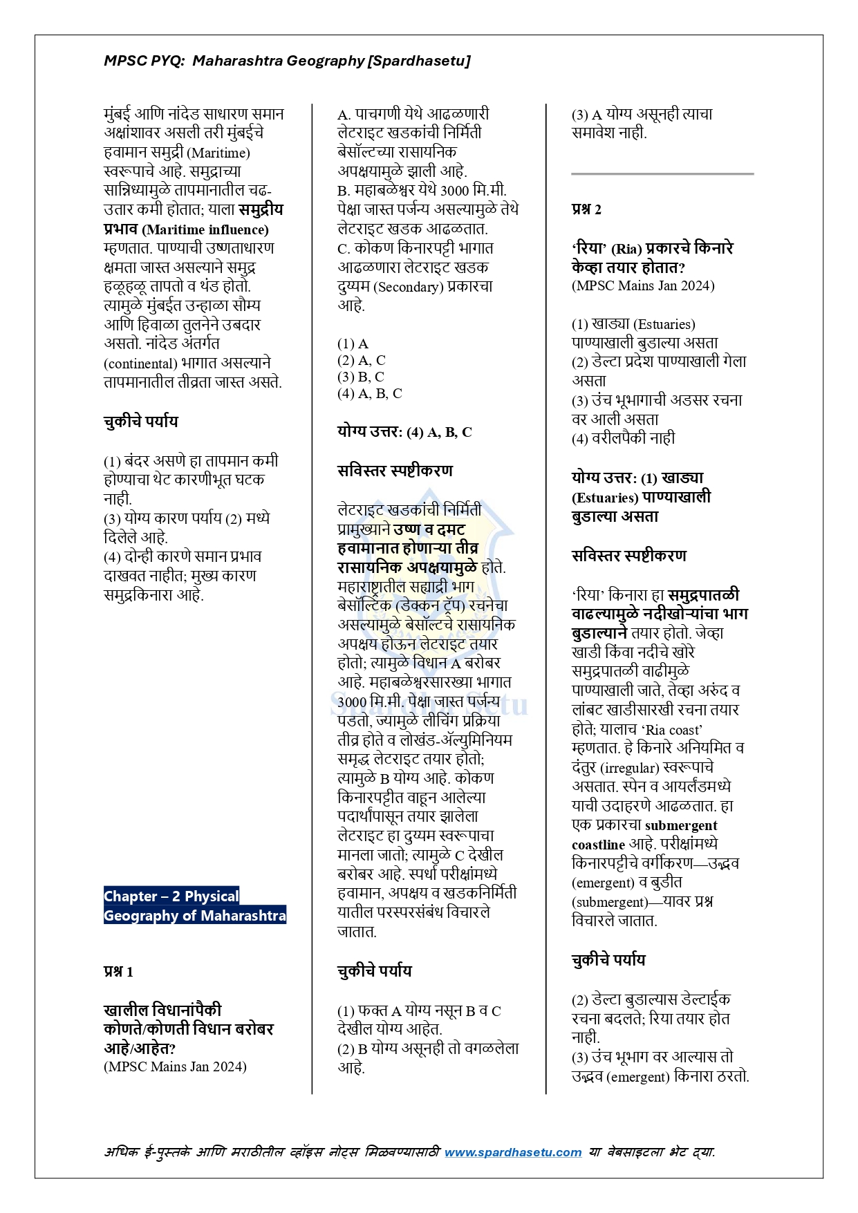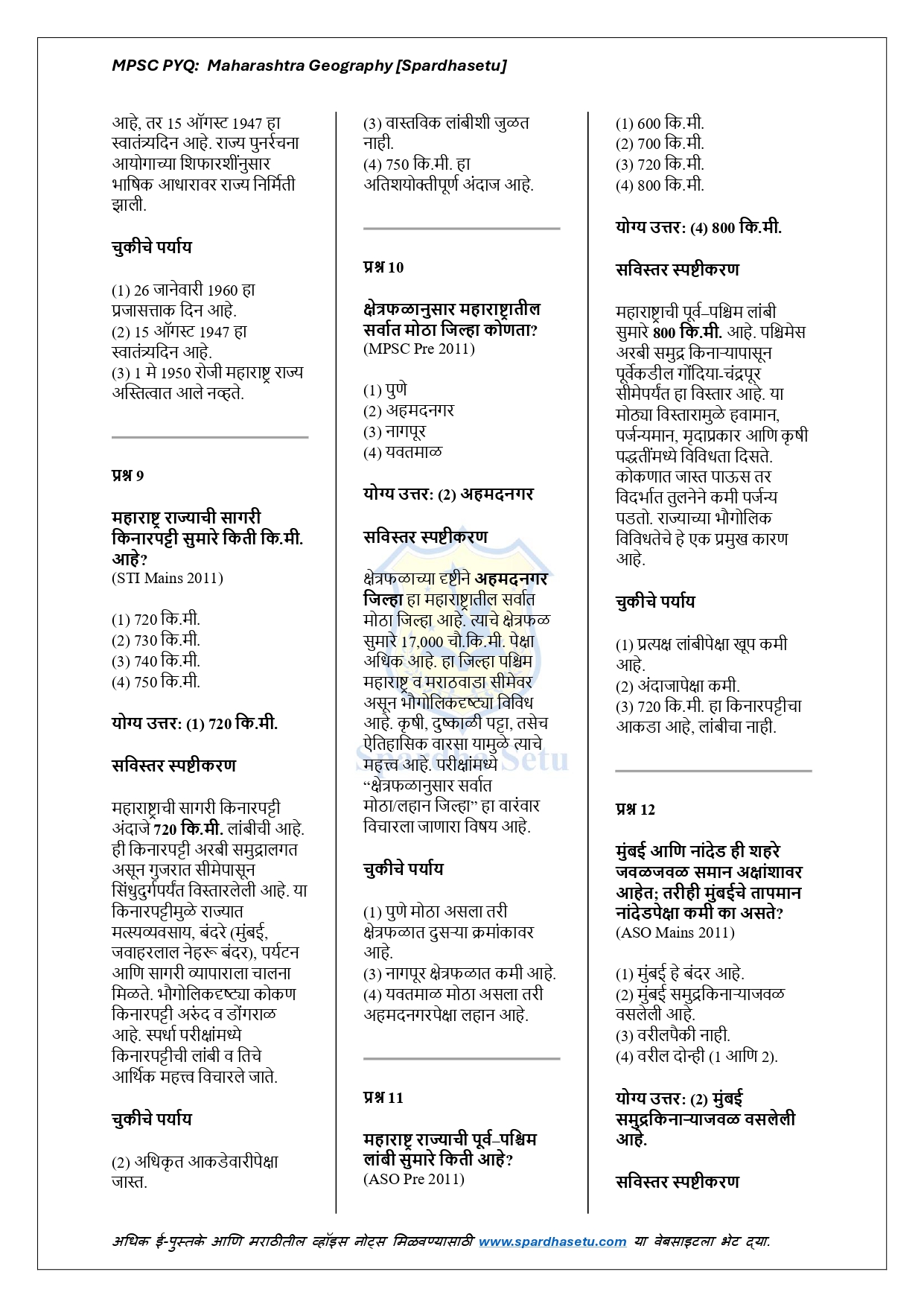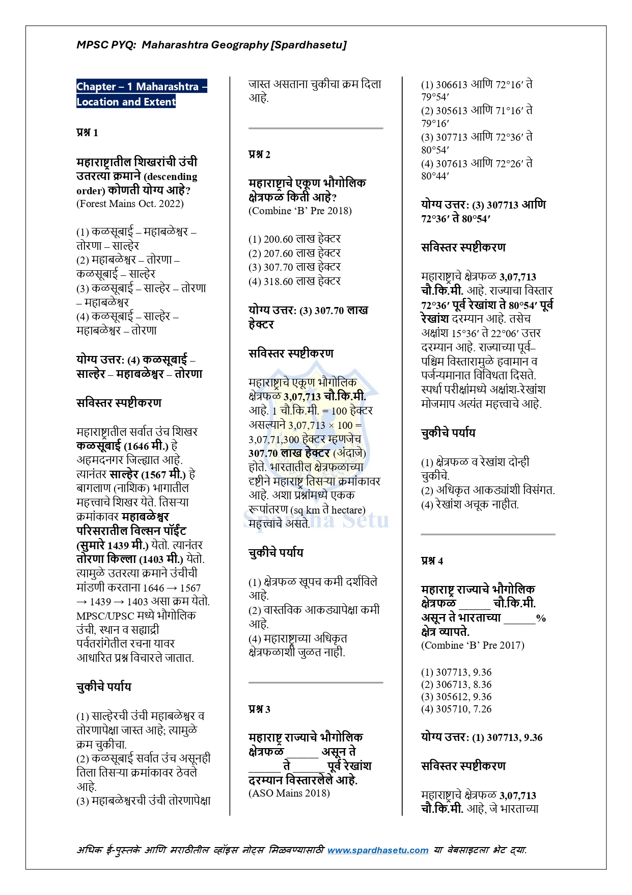 рд╣реЗ рдИ-рдмреБрдХ MPSC рдкрд░реАрдХреНрд╖реЗрдд рд╡рд┐рдЪрд╛рд░рд▓реЗрд▓реНрдпрд╛ рдорд╣рд╛рд░рд╛рд╖реНрдЯреНрд░рд╛рдЪреНрдпрд╛ рднреВрдЧреЛрд▓рд╛рддреАрд▓ рд╕рд░реНрд╡ рдорд╣рддреНрддреНрд╡рдкреВрд░реНрдг PYQs рдЪреЗ рдЕрдЪреВрдХ, рд╡реНрдпрд╡рд╕реНрдерд┐рдд рд╡ рд╕рдЦреЛрд▓ рд╡рд┐рд╢реНрд▓реЗрд╖рдгрд╛рд╕рд╣ рд╕рдВрдХрд▓рди рдЖрд╣реЗ. рднреМрдЧреЛрд▓рд┐рдХ рд╡рд┐рднрд╛рдЧ, рд╕рд╣реНрдпрд╛рджреНрд░реАтАУрд╡рд┐рджрд░реНрднтАУрдорд░рд╛рдард╡рд╛рдбрд╛тАУрдХреЛрдВрдХрдгрдЪреА рд╡реИрд╢рд┐рд╖реНрдЯреНрдпреЗ, рдирджреНрдпрд╛, рд╣рд╡рд╛рдорд╛рди, рдореГрджрд╛рдкреНрд░рдХрд╛рд░, рд╢реЗрддреА рдкрджреНрдзрддреА, рдЙрджреНрдпреЛрдЧ, рдЦрдирд┐рдЬрд╕рдВрдкрджрд╛, рдЬрд▓рд╕реНрд░реЛрдд, рд▓реЛрдХрд╕рдВрдЦреНрдпрд╛ рд╡ рдкрд░реНрдпрд╛рд╡рд░рдг рдЕрд╢рд╛ рд╕рд░реНрд╡ рдЕрдзреНрдпрд╛рдпрд╛рдВрдЪреЗ рдкреНрд░рд╢реНрди рддрд░реНрдХрд╢реБрджреНрдз рд╕реНрдкрд╖реНрдЯреАрдХрд░рдгрд╛рд╕рд╣ рд╕рд╛рджрд░ рдХреЗрд▓реЗ рдЖрд╣реЗрдд. рдирдХрд╛рд╢рд╛рддреНрдордХ рд╕рдВрджрд░реНрдн, рдХрд╛рд░рдгрдореАрдорд╛рдВрд╕рд╛ рдЖрдгрд┐ рдЕрд╡рдзрд╛рд░рдгрд╛рдВрдЪреЗ рд╕рдВрдХреНрд╖рд┐рдкреНрдд рд╡рд┐рд╢реНрд▓реЗрд╖рдг рд╡рд┐рджреНрдпрд╛рд░реНрдереНрдпрд╛рдВрдЪреА рд╕рдВрдХрд▓реНрдкрдирд╛рддреНрдордХ рдкрдХрдб рдордЬрдмреВрдд рдХрд░рддреЗ. MPSC Prelims, Group-B/C рдЖрдгрд┐ рд╕рд░реНрд╡ рднреВрдЧреЛрд▓рд╛рдзрд╛рд░рд┐рдд рдкрд░реАрдХреНрд╖рд╛рдВрд╕рд╛рдареА рд╣реЗ рдИ-рдмреБрдХ рдЕрддреНрдпрдВрдд рдЙрдкрдпреБрдХреНрдд рдард░рддреЗ.