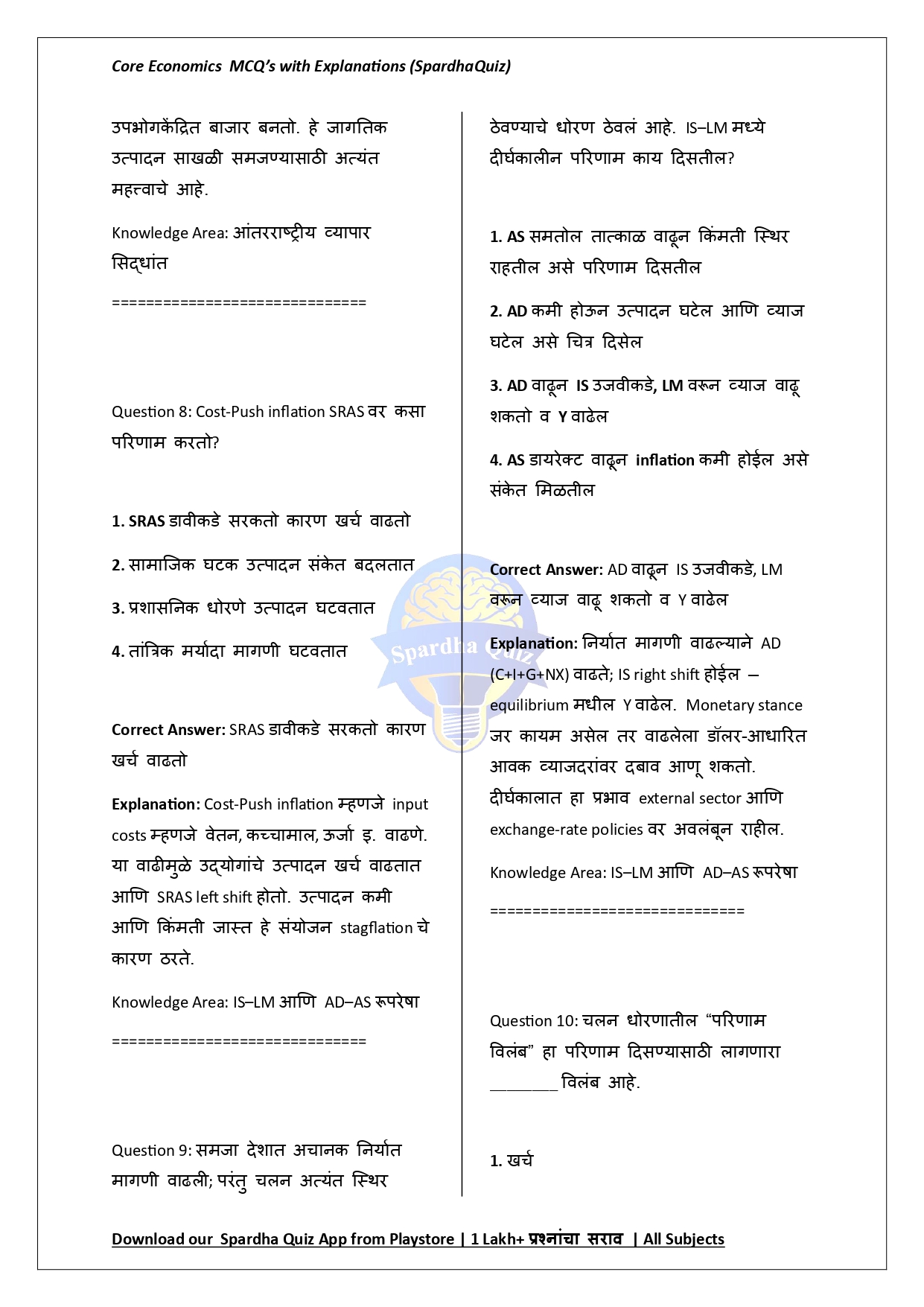 рд╣реЗ рдИ-рдмреБрдХ рдореВрд▓рднреВрдд рдЕрд░реНрдерд╢рд╛рд╕реНрддреНрд░рд╛рддреАрд▓ рдорд╣рддреНрддреНрд╡рд╛рдЪреНрдпрд╛ рд╕рдВрдХрд▓реНрдкрдирд╛рдВрд╡рд░ рдЖрдзрд╛рд░рд┐рдд рдмрд╣реБрдкрд░реНрдпрд╛рдпреА рдкреНрд░рд╢реНрдирд╛рдВрдЪреЗ (MCQs) рд╕реБрдмреЛрдз, рдЕрдЪреВрдХ рдЖрдгрд┐ рдкрд░реАрдХреНрд╖рд╛-рдХреЗрдВрджреНрд░рд┐рдд рд╕рдВрдХрд▓рди рдЖрд╣реЗ. рдорд╛рдЧрдгреАтАУрдкреБрд░рд╡рдард╛, рдЙрддреНрдкрд╛рджрди, рдЦрд░реНрдЪ, рдмрд╛рдЬрд╛рд░рд░рдЪрдирд╛, рд░рд╛рд╖реНрдЯреНрд░реАрдп рдЙрддреНрдкрдиреНрди, рдЪрд▓рдирд╡рд┐рд╖рдпрдХ рд╡ рд░рд╛рдЬрдХреЛрд╖реАрдп рдзреЛрд░рдг, рдорд╣рд╛рдЧрд╛рдИ, рдмреЗрд░реЛрдЬрдЧрд╛рд░реА, рдЖрд░реНрдерд┐рдХ рд╡рд┐рдХрд╛рд╕ рдЖрдгрд┐ рдЗрддрд░ рдкреНрд░рдореБрдЦ рдШрдЯрдХрд╛рдВрдЪреЗ рдкреНрд░рд╢реНрди рд╕рд╡рд┐рд╕реНрддрд░ рд╡ рддрд░реНрдХрд╢реБрджреНрдз рд╕реНрдкрд╖реНрдЯреАрдХрд░рдгрд╛рдВрд╕рд╣ рджрд┐рд▓реЗ рдЖрд╣реЗрдд. рд╕рдВрдХрд▓реНрдкрдирд╛рддреНрдордХ рд╕рдордЬ рд╡рд╛рдврд╡рдгреНрдпрд╛рд╕рд╛рдареА, рддрдереНрдпреЗ рд▓рдХреНрд╖рд╛рдд рдареЗрд╡рдгреНрдпрд╛рд╕рд╛рдареА рдЖрдгрд┐ рдкреНрд░рд╢реНрди рд╕реЛрдбрд╡рдгреНрдпрд╛рдЪреА рдЕрдЪреВрдХрддрд╛ рд╕реБрдзрд╛рд░рдгреНрдпрд╛рд╕рд╛рдареА рд╣реЗ рдИ-рдмреБрдХ рд╡рд┐рджреНрдпрд╛рд░реНрдереНрдпрд╛рдВрдирд╛ рдЕрддреНрдпрдВрдд рдЙрдкрдпреБрдХреНрдд рдард░рддреЗ. MPSC, SSC, Railway, Banking рдЖрдгрд┐ рдЗрддрд░ рд╕рд░реНрд╡ рд╕реНрдкрд░реНрдзрд╛ рдкрд░реАрдХреНрд╖рд╛рдВрд╕рд╛рдареА рд╣реЗ рдкреБрд╕реНрддрдХ рдПрдХ рдкрд░рд┐рдгрд╛рдордХрд╛рд░рдХ рдорд╛рд░реНрдЧрджрд░реНрд╢рдХ рдЖрд╣реЗ.