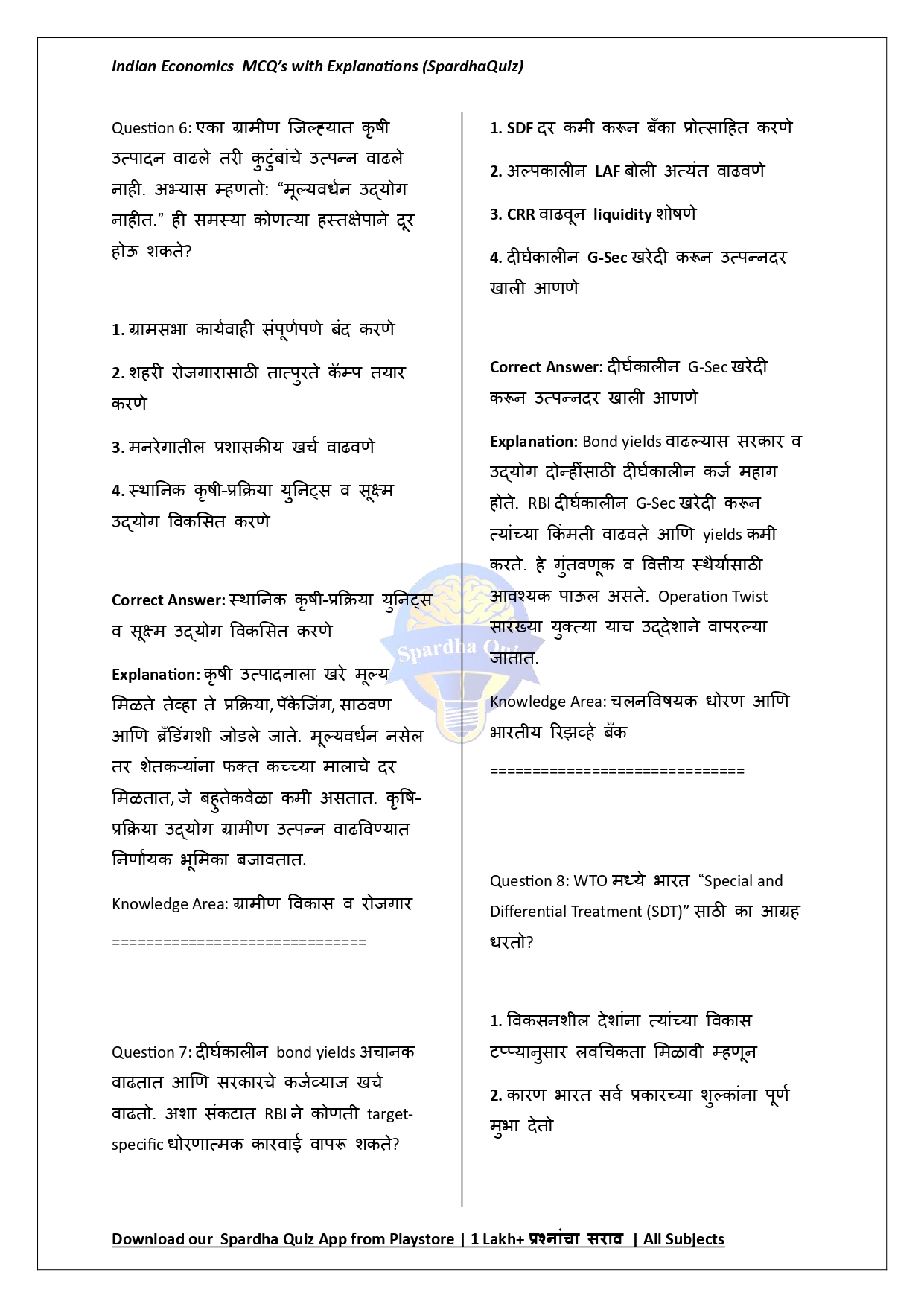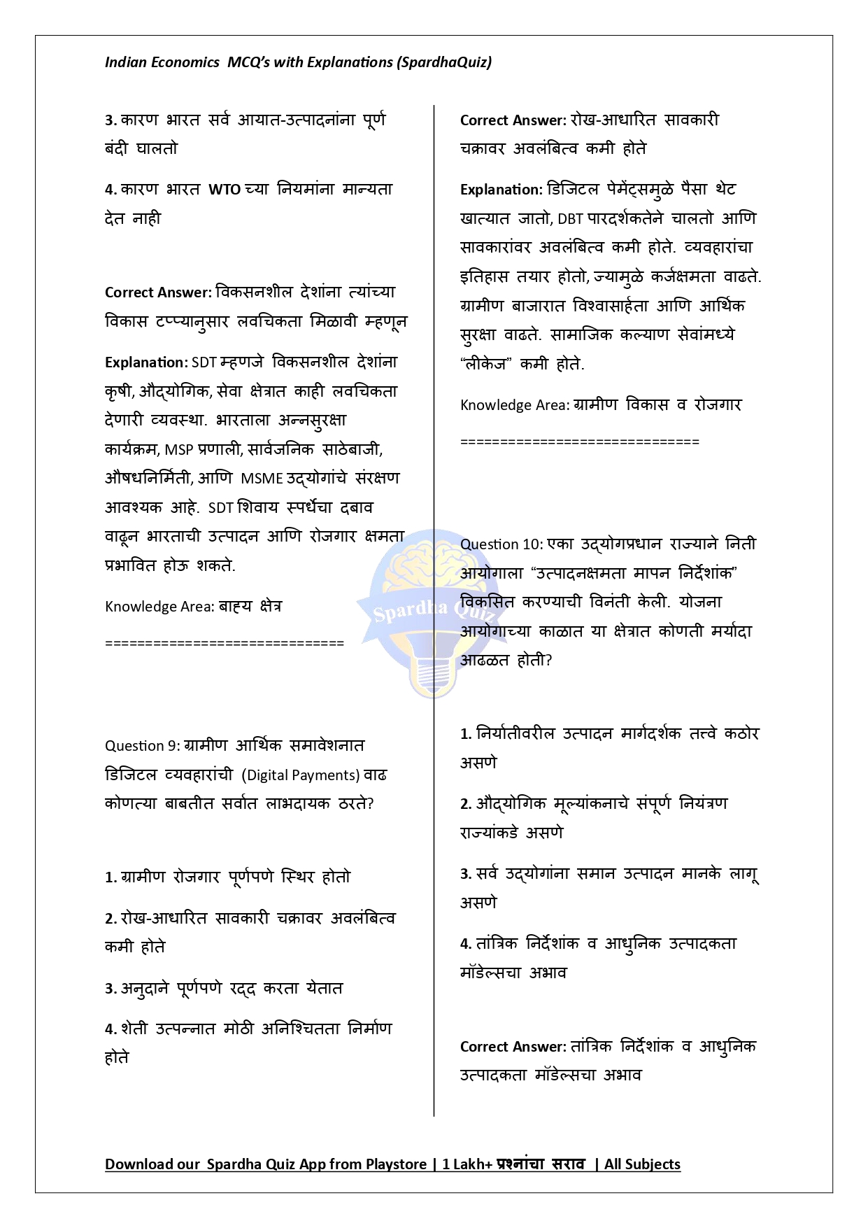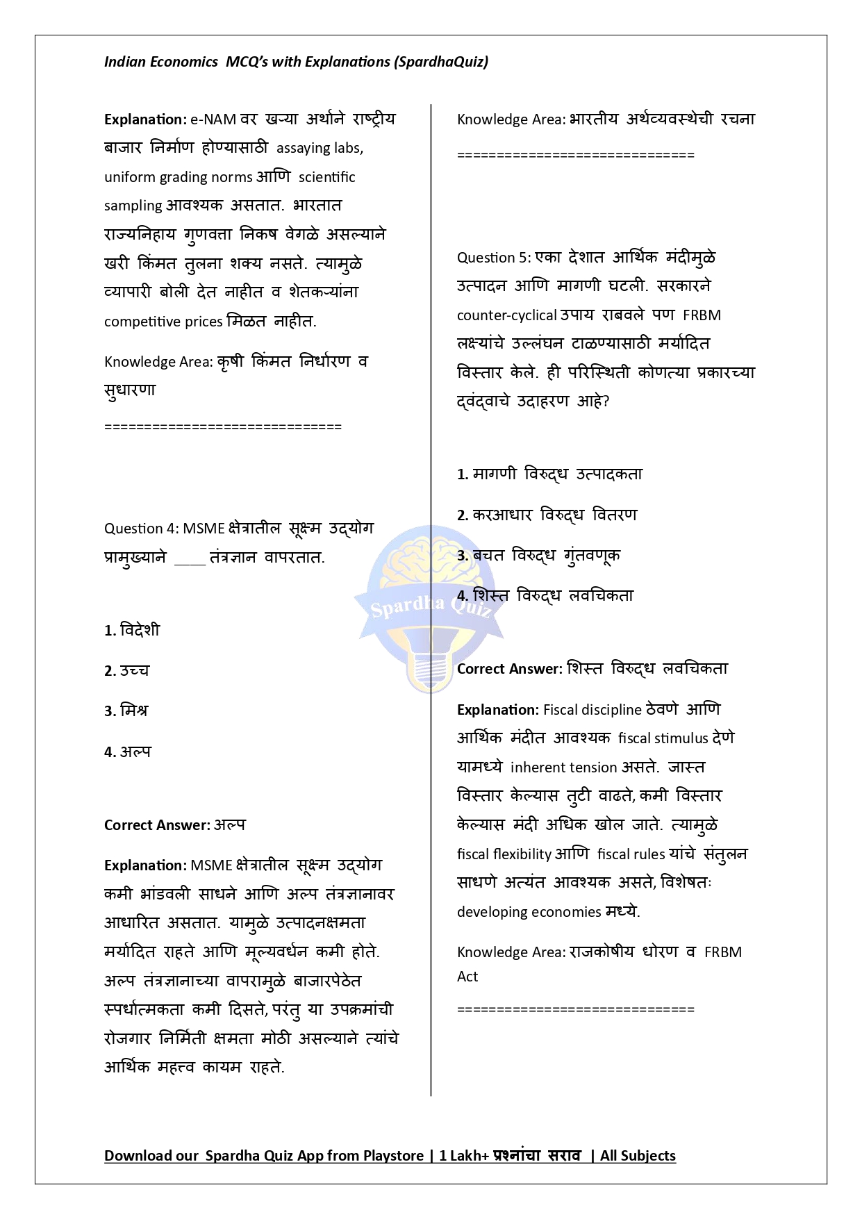 рд╣реЗ рдИ-рдмреБрдХ рднрд╛рд░рддреАрдп рдЕрд░реНрдерд╢рд╛рд╕реНрддреНрд░рд╛рддреАрд▓ рдкреНрд░рдореБрдЦ рд╕рдВрдХрд▓реНрдкрдирд╛рдВрд╡рд░ рдЖрдзрд╛рд░рд┐рдд рдмрд╣реБрдкрд░реНрдпрд╛рдпреА рдкреНрд░рд╢реНрдирд╛рдВрдЪреЗ (MCQs) рдЕрдЪреВрдХ, рдЕрджреНрдпрдпрд╛рд╡рдд рдЖрдгрд┐ рдкрд░реАрдХреНрд╖рд╛-рдкрджреНрдзрддреАрдиреБрд╕рд╛рд░ рд╕рдВрдХрд▓рд┐рдд рдХреЗрд▓реЗрд▓реЗ рдорд╛рд░реНрдЧрджрд░реНрд╢рдХ рдЖрд╣реЗ. рд░рд╛рд╖реНрдЯреНрд░реАрдп рдЙрддреНрдкрдиреНрди, рдкрдВрдЪрд╡рд╛рд░реНрд╖рд┐рдХ рдпреЛрдЬрдирд╛, рдЖрд░реНрдерд┐рдХ рд╕реБрдзрд╛рд░рдгрд╛, рдХреГрд╖реА рд╡ рдФрджреНрдпреЛрдЧрд┐рдХ рд╡рд┐рдХрд╛рд╕, рд╕рд╛рд░реНрд╡рдЬрдирд┐рдХ рд╡рд┐рддреНрдд, рдЪрд▓рдирд╡рд┐рд╖рдпрдХ рдзреЛрд░рдг, рдмрдБрдХрд┐рдВрдЧ рд╡реНрдпрд╡рд╕реНрдерд╛, рдорд╣рд╛рдЧрд╛рдИ, рдмреЗрд░реЛрдЬрдЧрд╛рд░реА, рдЧрд░реАрдмреА, рдирд┐рд░реНрдпрд╛рддтАУрдЖрдпрд╛рдд, рдЖрд░реНрдерд┐рдХ рд╕рд░реНрд╡реЗрдХреНрд╖рдг рдЖрдгрд┐ рдЕрд░реНрдерд╕рдВрдХрд▓реНрдк рдпрд╛ рд╕рд░реНрд╡ рдорд╣рддреНрддреНрд╡рд╛рдЪреНрдпрд╛ рдШрдЯрдХрд╛рдВрд╡рд░реАрд▓ рдкреНрд░рд╢реНрди рд╕реНрдкрд╖реНрдЯ рд╡ рд╕рд░рд│ рдЙрддреНрддрд░реЗрд╕рд╣ рджрд┐рд▓реЗ рдЖрд╣реЗрдд. рднрд╛рд░рддреАрдп рдЕрд░реНрдерд╡реНрдпрд╡рд╕реНрдереЗрдЪреА рддрдереНрдпрд╛рддреНрдордХ рддрд╕реЗрдЪ рд╕рдВрдХрд▓реНрдкрдирд╛рддреНрдордХ рд╕рдордЬ рдордЬрдмреВрдд рдХрд░рдгреНрдпрд╛рд╕рд╛рдареА рд╣реЗ рдИ-рдмреБрдХ MPSC, UPSC, SSC, Railway, Banking рдЖрдгрд┐ рд╕рд░реНрд╡ рд╕реНрдкрд░реНрдзрд╛ рдкрд░реАрдХреНрд╖рд╛рдВрд╕рд╛рдареА рдЕрддреНрдпрдВрдд рдЙрдкрдпреБрдХреНрдд рдард░рддреЗ.