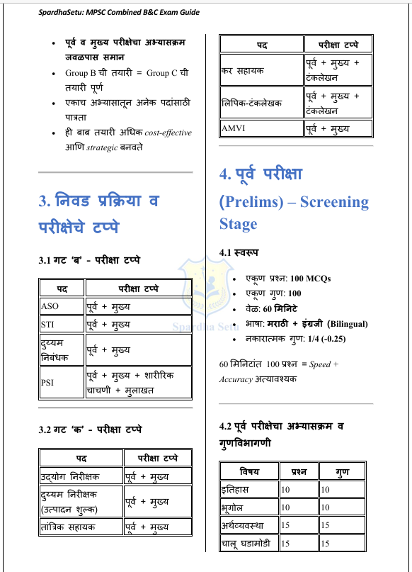 рд╣реЗ MPSC Combined Group B & C рдкрд░реАрдХреНрд╖рд╛ рдорд╛рд░реНрдЧрджрд░реНрд╢рдХ рдИ-рдмреБрдХ (PDF рд╕реНрд╡рд░реВрдкрд╛рдд) рдорд╣рд╛рд░рд╛рд╖реНрдЯреНрд░ рд▓реЛрдХрд╕реЗрд╡рд╛ рдЖрдпреЛрдЧрд╛рдЪреНрдпрд╛ рд╕рдВрдпреБрдХреНрдд рдЧрдЯ рдм рд╡ рдЧрдЯ рдХ рдкрд░реАрдХреНрд╖рд╛рдВрдЪреА рддрдпрд╛рд░реА рдХрд░рдгрд╛рд▒реНрдпрд╛ рд╡рд┐рджреНрдпрд╛рд░реНрдереНрдпрд╛рдВрд╕рд╛рдареА рд╡рд┐рд╢реЗрд╖рддрдГ рддрдпрд╛рд░ рдХрд░рдгреНрдпрд╛рдд рдЖрд▓реЗ рдЖрд╣реЗ. рдкрд░реАрдХреНрд╖рд╛ рд░рдЪрдирд╛, рдЕрднреНрдпрд╛рд╕рдХреНрд░рдо, рд╡рд┐рд╖рдпрд╡рд╛рд░ рддрдпрд╛рд░реА, рдорд╣рддреНрддреНрд╡рд╛рдЪреЗ рдШрдЯрдХ, рдорд╛рдЧреАрд▓ рд╡рд░реНрд╖рд╛рдВрдЪреНрдпрд╛ рдкреНрд░рд╢реНрдирд╛рдВрдЪреЗ рд╕реНрд╡рд░реВрдк, рдЕрднреНрдпрд╛рд╕рд╛рдЪреА рдпреЛрдЧреНрдп рд░рдгрдиреАрддреА рд╡ рдкрд░реАрдХреНрд╖рд╛рднрд┐рдореБрдЦ рдЯрд┐рдкреНрд╕ рдпрд╛рдВрдЪрд╛ рд╕рд╡рд┐рд╕реНрддрд░ рд╕рдорд╛рд╡реЗрд╢ рдХрд░рдгреНрдпрд╛рдд рдЖрд▓рд╛ рдЖрд╣реЗ. Prelims рд╡ Mains рджреЛрдиреНрд╣реА рд╕реНрддрд░рд╛рдВрд╡рд░реАрд▓ рддрдпрд╛рд░реАрд╕рд╛рдареА рд╣реЗ рдорд╛рд░реНрдЧрджрд░реНрд╢рдХ рдЙрдкрдпреБрдХреНрдд рдЕрд╕реВрди рдЗрддрд░ рд╕реНрдкрд░реНрдзрд╛ рдкрд░реАрдХреНрд╖рд╛рдВрд╕рд╛рдареАрд╣реА рдордЬрдмреВрдд рдкрд╛рдпрд╛ рдирд┐рд░реНрдорд╛рдг рдХрд░рдгреНрдпрд╛рд╕ рдорджрдд рдХрд░рддреЗ.