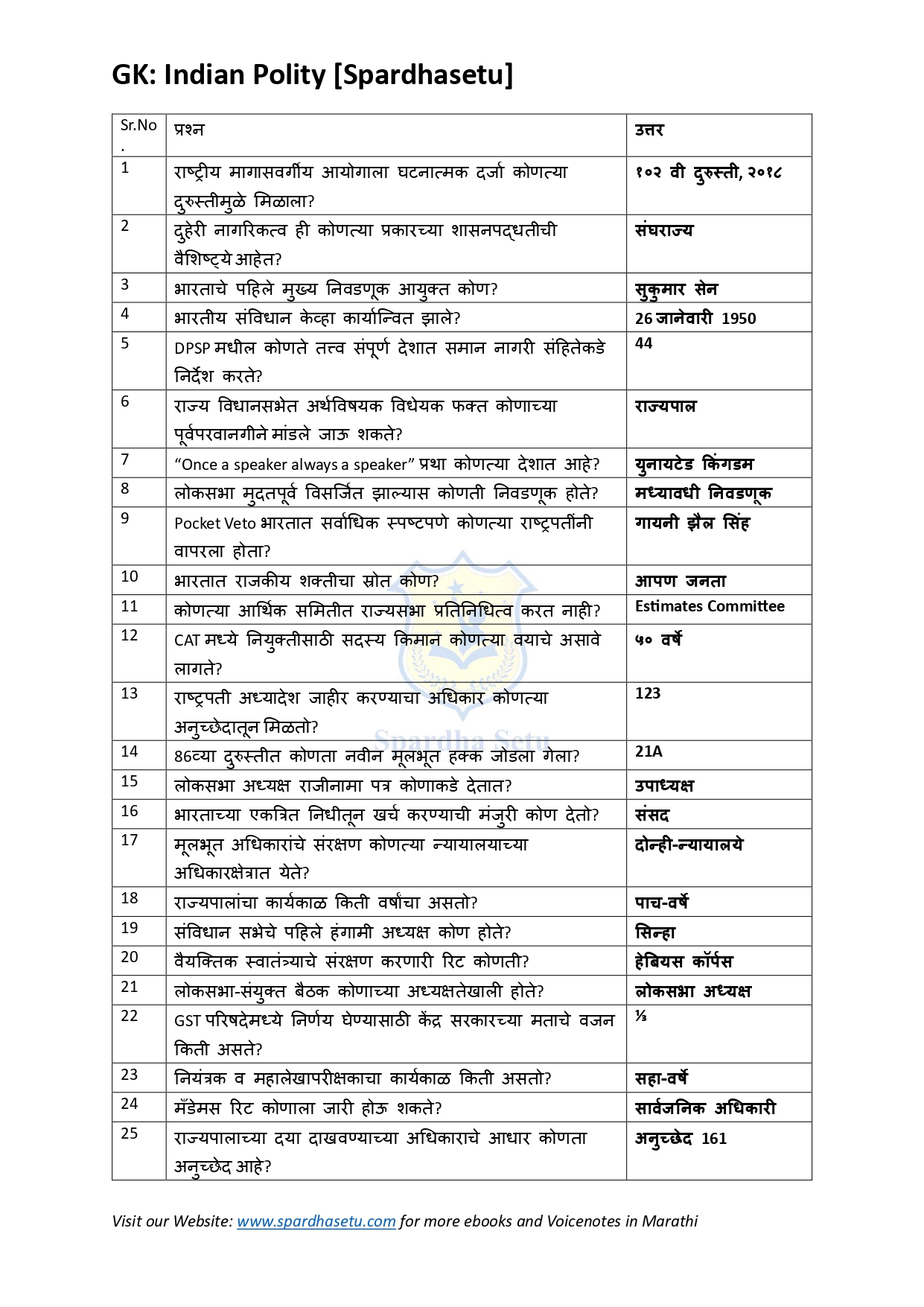 рд╣реЗ 12000 GK One-Liners PDF рдорд╣рд╛рд░рд╛рд╖реНрдЯреНрд░рд╛рддреАрд▓ рд╕рд░реНрд╡ рд╕реНрдкрд░реНрдзрд╛ рдкрд░реАрдХреНрд╖рд╛рдВрд╕рд╛рдареА рддрдпрд╛рд░ рдХрд░рдгреНрдпрд╛рдд рдЖрд▓реЗ рдЖрд╣реЗ тАФ MPSC, Police Bhрд░реНрддреА, Talathi, Arogya, Saral Seva, ZP рдЖрджреАрдВрд╕рд╛рдареА рдЙрдкрдпреБрдХреНрдд. рдпрд╛рдд рдЗрддрд┐рд╣рд╛рд╕, рднреВрдЧреЛрд▓, рд░рд╛рдЬреНрдпрд╢рд╛рд╕реНрддреНрд░, рдЕрд░реНрдерд╢рд╛рд╕реНрддреНрд░, рднрд╛рд░рддреАрдп рд╡ рдорд╣рд╛рд░рд╛рд╖реНрдЯреНрд░ рд╡рд┐рд╢реЗрд╖, рддрд╕реЗрдЪ рд╡рд┐рдЬреНрдЮрд╛рди (рднреМрддрд┐рдХ, рд░рд╕рд╛рдпрди, рдЬреАрд╡рд╢рд╛рд╕реНрддреНрд░), рд╕рдВрдЧрдгрдХ, IT, рдЖрдзреБрдирд┐рдХ рддрдВрддреНрд░рдЬреНрдЮрд╛рди рдпрд╛рдВрдЪреЗ рдЕрдЪреВрдХ рд╡ рдПрдХрджрдо рдереЗрдЯ рдореБрджреНрджреЗ рджрд┐рд▓реЗрд▓реЗ рдЖрд╣реЗрдд. рдпрд╛рдордзреНрдпреЗ рдорд╣рддреНрддреНрд╡рд╛рдЪреЗ рджрд┐рд╡рд╕, рдЬрд╛рдЧрддрд┐рдХ/рд░рд╛рд╖реНрдЯреНрд░реАрдп рд╕рдВрдШрдЯрдирд╛, рдкрд╣рд┐рд▓реНрдпрд╛ рдШрдЯрдирд╛, рдкреБрд░рд╕реНрдХрд╛рд░, рдкреБрд╕реНрддрдХреЗ-рд▓реЗрдЦрдХ, рд╕рд░реНрд╡ рд╡рд┐рд╖рдпрд╛рдВрдЪрд╛ рд╕рдорд╛рд╡реЗрд╢ рдЖрд╣реЗ. рд╕рд░реНрд╡ рдкреНрд░рд╢реНрди рд╡рди-рд▓рд╛рдЗрдирд░ рдлреЙрд░рдореЕрдЯрдордзреНрдпреЗ, рд╕реЛрдкреНрдпрд╛ рднрд╛рд╖реЗрдд рд╡ рдкрд░реАрдХреНрд╖реЗрддреАрд▓ рдкреБрдирд░рд╛рд╡реГрддреНрддреА рдкрд╛рд╣реВрди рдирд┐рд╡рдбрд▓реЗрд▓реЗ рдЖрд╣реЗрдд. рд╣реА PDF рд╡реЗрдЧрд╛рдиреЗ рдкреБрдирд░рд╛рд╡рд▓реЛрдХрди, рдЕрдВрддрд┐рдо рддрдпрд╛рд░реА рдЖрдгрд┐ рд╕реНрдХреЛрдЕрд░ рд╡рд╛рдв рдХрд░рдгреНрдпрд╛рд╕рд╛рдареА рдЕрддреНрдпрдВрдд рдЙрдкрдпреБрдХреНрдд рдЖрд╣реЗ.