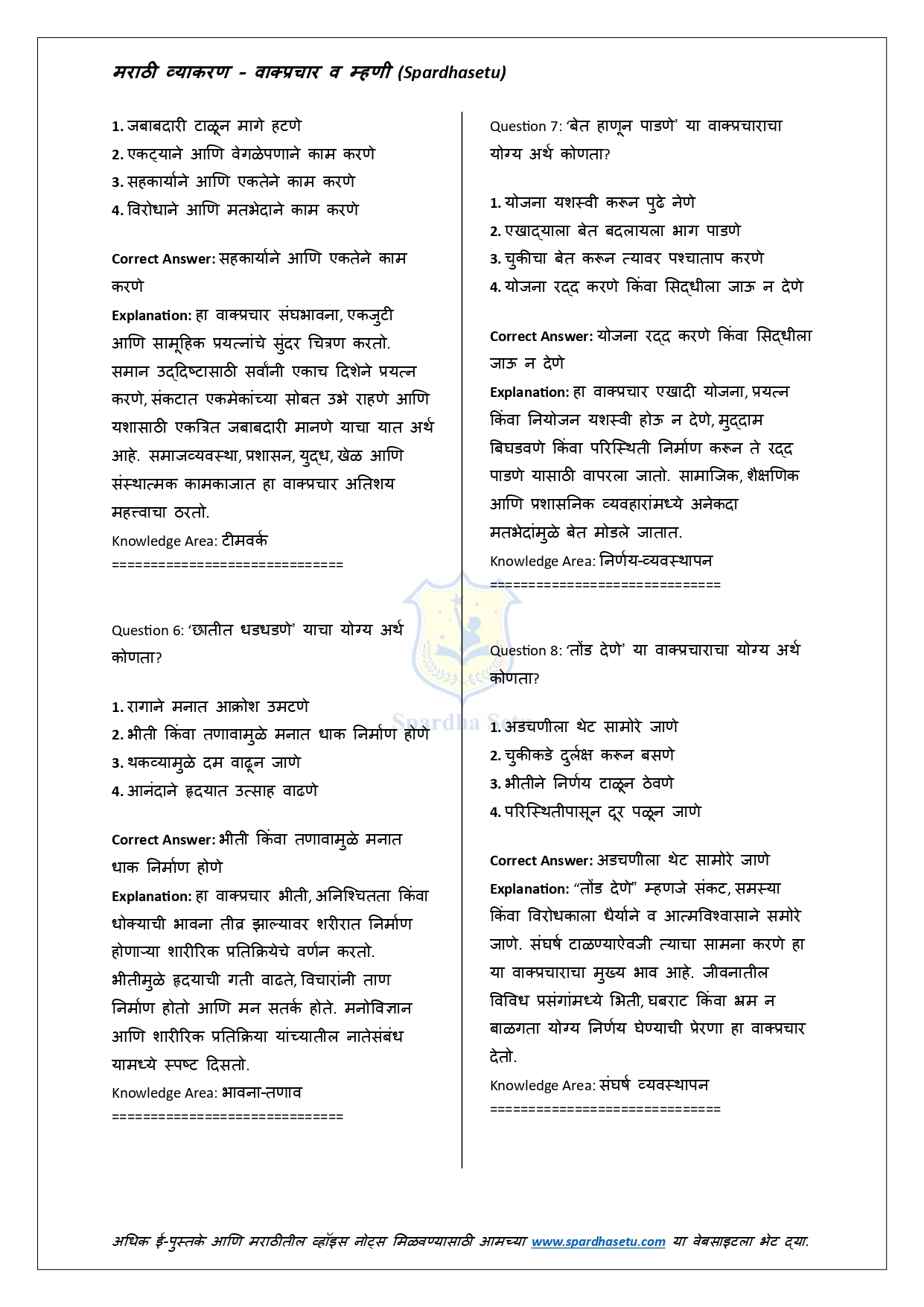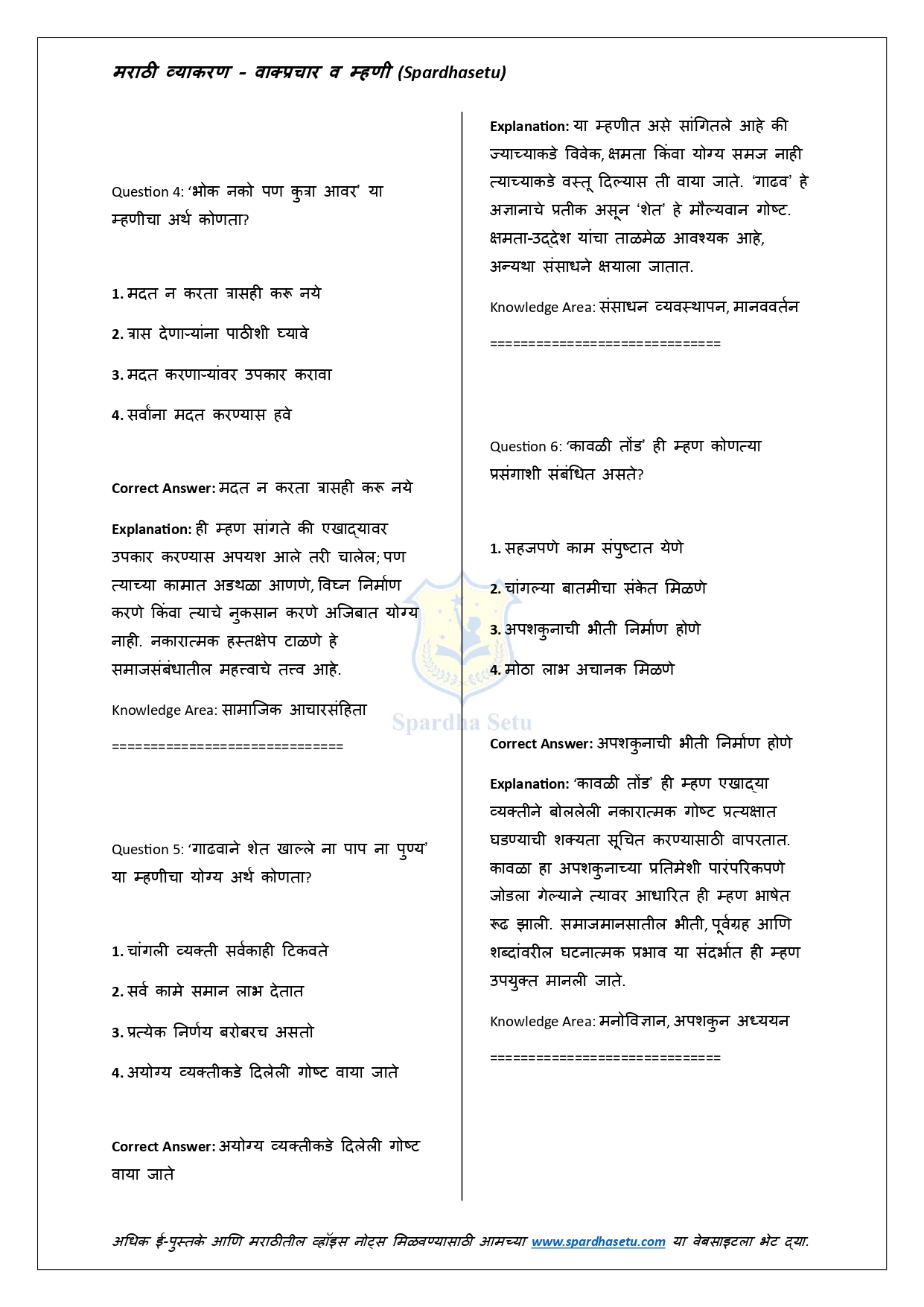 рд╣реЗ рдИ-рдмреБрдХ рдорд░рд╛рдареАрддреАрд▓ рдорд╣рддреНрддреНрд╡рд╛рдЪреНрдпрд╛ рдореНрд╣рдгреА рдЖрдгрд┐ рд╡рд╛рдХреНрдкреНрд░рдЪрд╛рд░рд╛рдВрдЪрд╛ рд╕рдЦреЛрд▓, рд╕реЛрдкрд╛ рдЖрдгрд┐ рдЕрд░реНрдердкреВрд░реНрдг рд╕рдВрдЧреНрд░рд╣ рд╕рд╛рджрд░ рдХрд░рддреЗ. рдкреНрд░рддреНрдпреЗрдХ рдореНрд╣рдг рд╡ рд╡рд╛рдХреНрдкреНрд░рдЪрд╛рд░рд╛рдЪрд╛ рдЕрд░реНрде, рд╕рдВрджрд░реНрдн рдЖрдгрд┐ рдпреЛрдЧреНрдп рд╡рд╛рдкрд░ рд╕реНрдкрд╖реНрдЯ рдкрджреНрдзрддреАрдиреЗ рджрд┐рд▓рд╛ рдЕрд╕рд▓реНрдпрд╛рдиреЗ рд╕реНрдкрд░реНрдзрд╛ рдкрд░реАрдХреНрд╖рд╛рдВрдордзреНрдпреЗ рдпреЗрдгрд╛рд░реЗ рдкреНрд░рд╢реНрди рд╕рд╣рдЬ рд╕реЛрдбрд╡рддрд╛ рдпреЗрддрд╛рдд. рд▓реЗрдЦрди, рднрд╛рд╖рд╛рдВрддрд░, рдирд┐рдмрдВрдз рдЖрдгрд┐ рднрд╛рд╖рд┐рдХ рдЕрднрд┐рд╡реНрдпрдХреНрддреА рд╕реБрдзрд╛рд░рдгреНрдпрд╛рд╕рд╛рдареА рд╣реЗ рдкреБрд╕реНрддрдХ рдЕрддреНрдпрдВрдд рдЙрдкрдпреБрдХреНрдд рдард░рддреЗ. MPSC, рд╕рд░рд│рд╕реЗрд╡рд╛, рдкреЛрд▓реАрд╕ рднрд░рддреА рдЖрдгрд┐ рд╕рд░реНрд╡ рдкреНрд░рдХрд╛рд░рдЪреНрдпрд╛ рд╕рд░рдХрд╛рд░реА рдкрд░реАрдХреНрд╖рд╛рдВрд╕рд╛рдареА рд╣реЗ рд╕рдВрдкреВрд░реНрдг рдорд╛рд░реНрдЧрджрд░реНрд╢рдХ рдЖрд╣реЗ.
