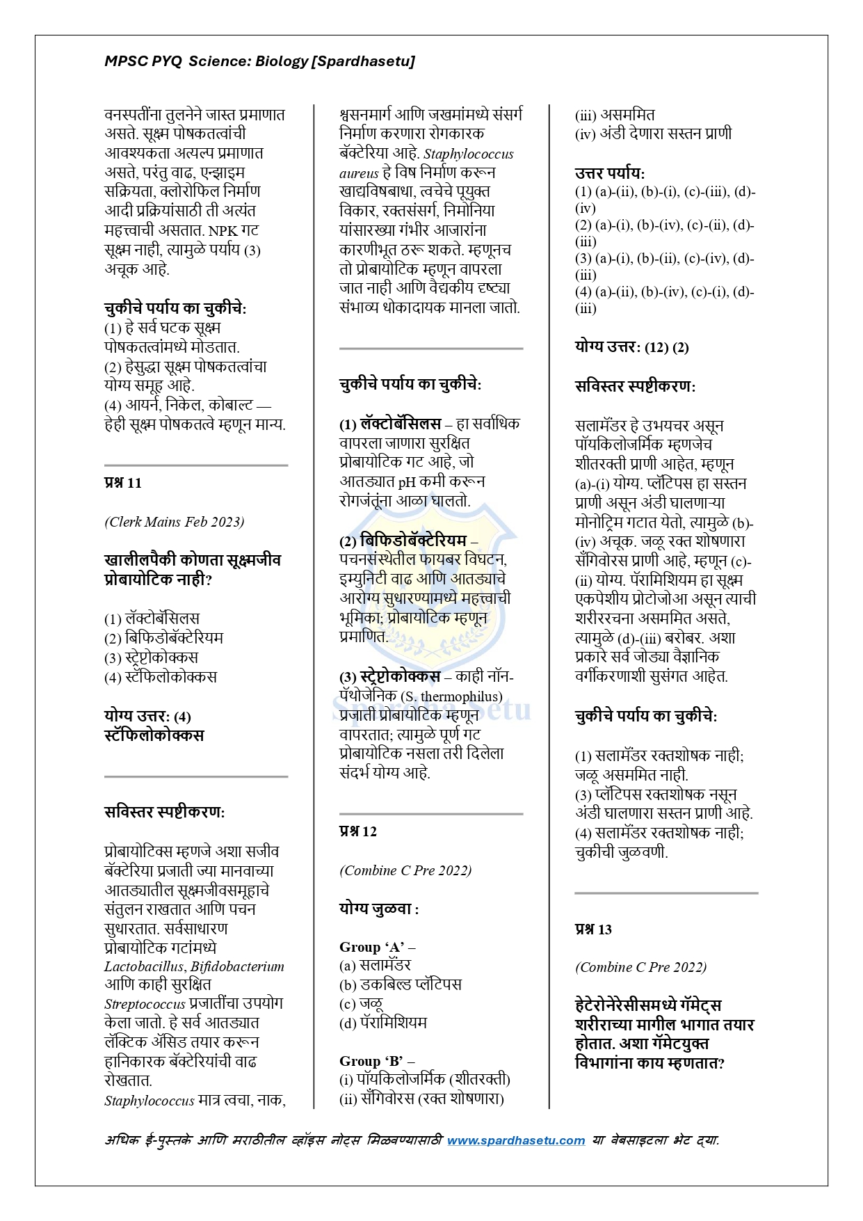 рд╣реЗ рдИ-рдмреБрдХ MPSC рдкрд░реАрдХреНрд╖реЗрдд рд╡рд┐рдЪрд╛рд░рд▓реЗрд▓реНрдпрд╛ рдЬреАрд╡рд╢рд╛рд╕реНрддреНрд░ рд╡рд┐рд╖рдпрд╛рдЪреНрдпрд╛ рд╕рд░реНрд╡ рдорд╣рддреНрддреНрд╡рдкреВрд░реНрдг PYQs рдЪреЗ рдЕрдЪреВрдХ, рд╡реНрдпрд╡рд╕реНрдерд┐рдд рдЖрдгрд┐ рд╡рд┐рд╢реНрд▓реЗрд╖рдгрд╛рддреНрдордХ рд╕рдВрдХрд▓рди рдЖрд╣реЗ. рдкреЗрд╢реА, рдКрддрдХ, рд╡рдирд╕реНрдкрддреА-рдЬреАрд╡рд╡рд┐рдЬреНрдЮрд╛рди, рдкреНрд░рд╛рдгреАрд╢рд╛рд╕реНрддреНрд░, рдорд╛рдирд╡реА рд╢рд░реАрд░рд░рдЪрдирд╛, рдкреЛрд╖рдг, рд╢реНрд╡рд╕рди, рдкреНрд░рдЬрдирди рдЖрдгрд┐ рдкрд░реНрдпрд╛рд╡рд░рдгрд╢рд╛рд╕реНрддреНрд░ рдпрд╛рдВрд╕рд╛рд░рдЦреНрдпрд╛ рдЕрдзреНрдпрд╛рдпрд╛рдВрд╡рд░реАрд▓ рдкреНрд░рд╢реНрдирд╛рдВрдирд╛ рд╕рд╡рд┐рд╕реНрддрд░ рдЖрдгрд┐ рддрд░реНрдХрд╢реБрджреНрдз рд╕реНрдкрд╖реНрдЯреАрдХрд░рдг рджреЗрдКрди рд╕рдВрдХрд▓реНрдкрдирд╛рддреНрдордХ рд╕рдордЬ рдЕрдзрд┐рдХ рдордЬрдмреВрдд рдХреЗрд▓реА рдЖрд╣реЗ. рдкреНрд░рддреНрдпреЗрдХ рдкреНрд░рд╢реНрдирд╛рдорд╛рдЧреАрд▓ рдХрд╛рд░рдгрдореАрдорд╛рдВрд╕рд╛ рд╕реНрдкрд╖реНрдЯ рдЕрд╕рд▓реНрдпрд╛рдореБрд│реЗ рд╡рд┐рджреНрдпрд╛рд░реНрдереА рдирд╡реАрди рдЖрдгрд┐ рдмрджрд▓рддреНрдпрд╛ рдкреЕрдЯрд░реНрдирд╡рд░реАрд▓ рдкреНрд░рд╢реНрдирд╣реА рдЖрддреНрдорд╡рд┐рд╢реНрд╡рд╛рд╕рд╛рдиреЗ рд╕реЛрдбрд╡реВ рд╢рдХрддрд╛рдд. MPSC Prelims, рд╕рд░рд│рд╕реЗрд╡рд╛, рдкреЛрд▓реАрд╕ рднрд░рддреА рдЖрдгрд┐ рдЗрддрд░ рд╕рд░реНрд╡ рд╡рд┐рдЬреНрдЮрд╛рдирд╛рдзрд╛рд░рд┐рдд рд╕реНрдкрд░реНрдзрд╛ рдкрд░реАрдХреНрд╖рд╛рдВрд╕рд╛рдареА рд╣реЗ рдИ-рдмреБрдХ рдЕрддреНрдпрдВрдд рдЙрдкрдпреБрдХреНрдд рдард░рддреЗ.